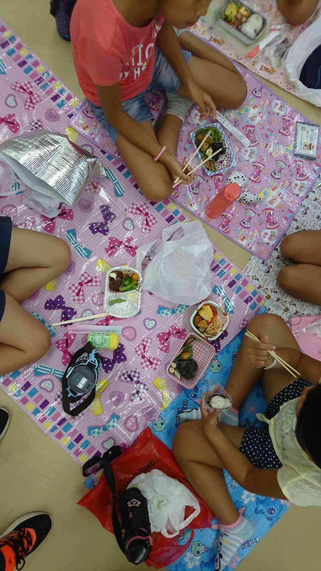 お弁当をいただきます。 保護者の皆様 ご準備ありがとうございました。 みんなほっとしています。