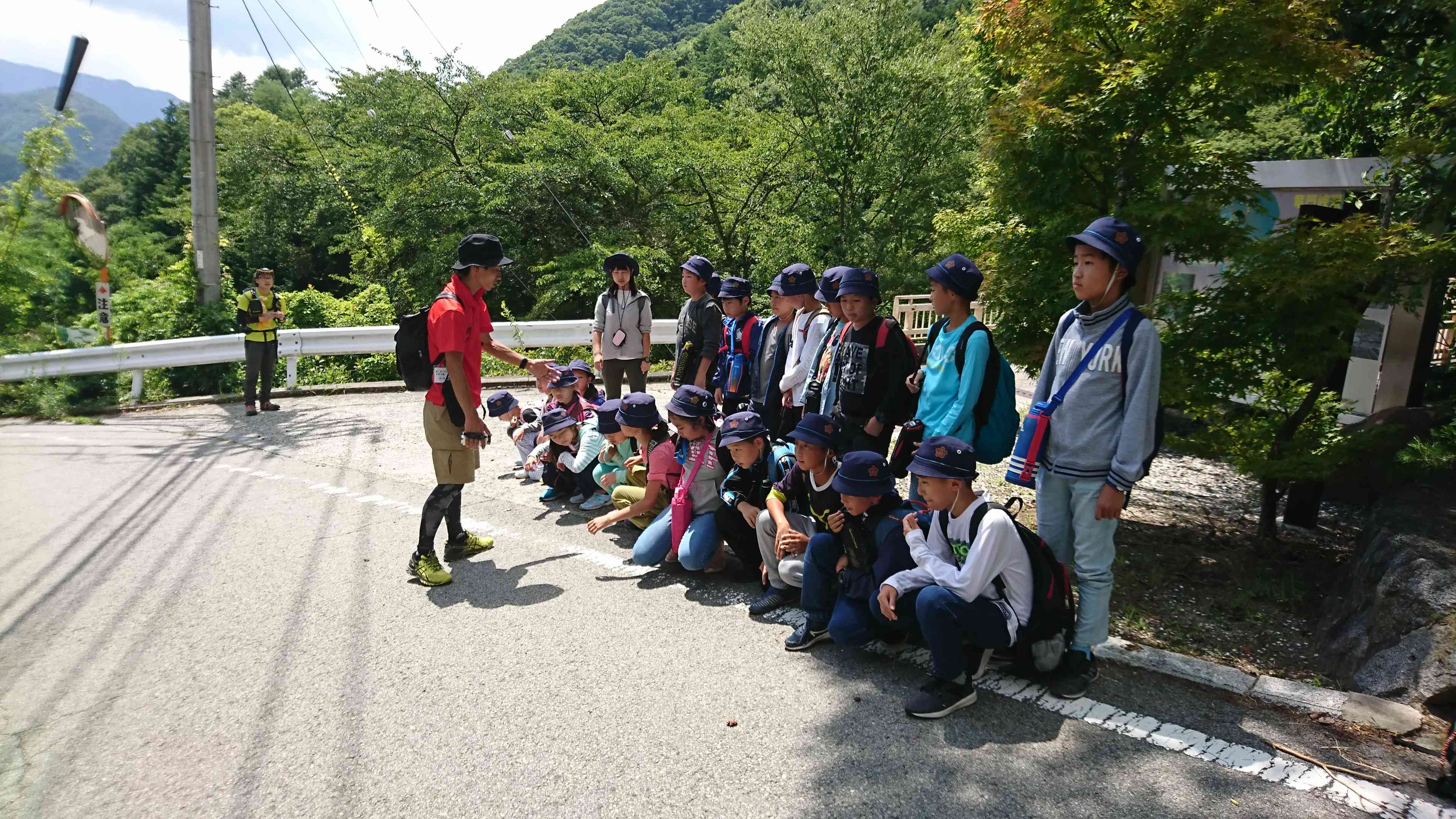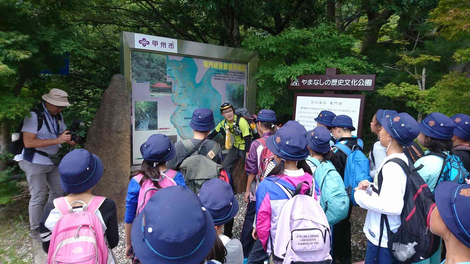 龍門狭ハイキング シャワークライミングとプログラム変更しました。ハイキングを実施します。 森のなかは涼しくて幸せです。 ガイドの説明がとても上手で勉強になります。