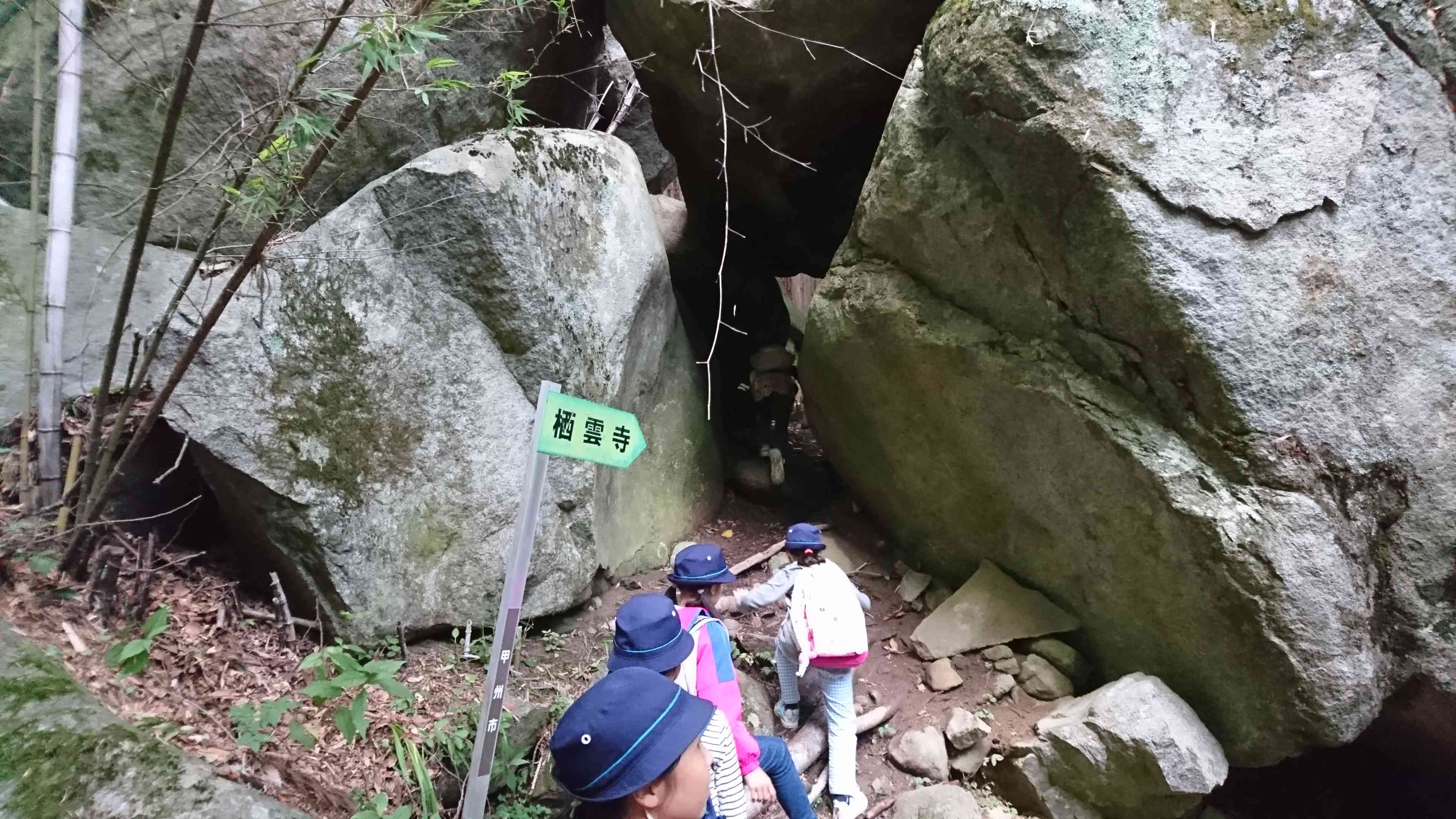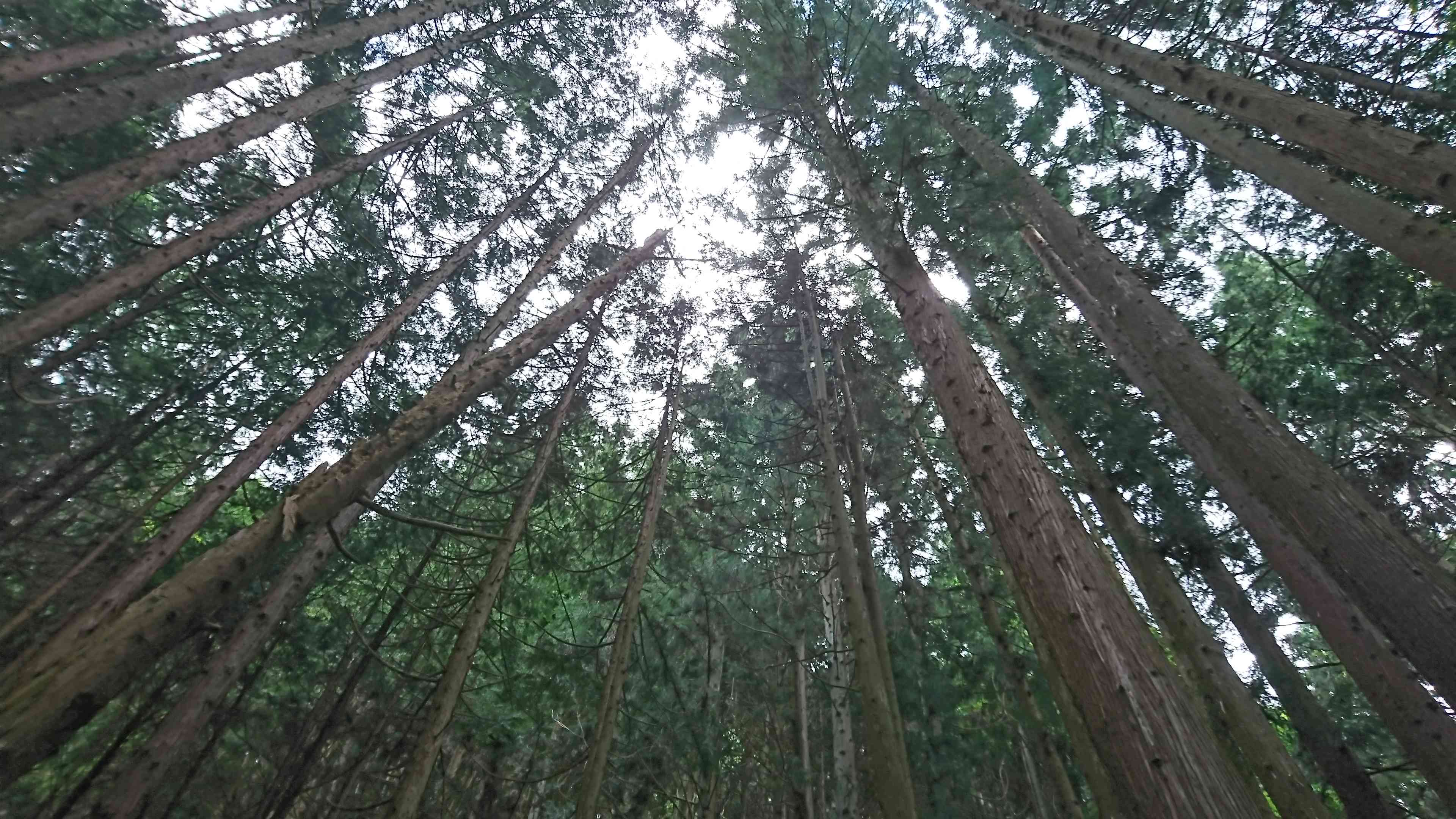 大きな岩の隙間を抜けると人工林になっていました。景色が全く変わってしまいます。 森のなかで都会の事を考えています。 森の役割は偉大ですね。