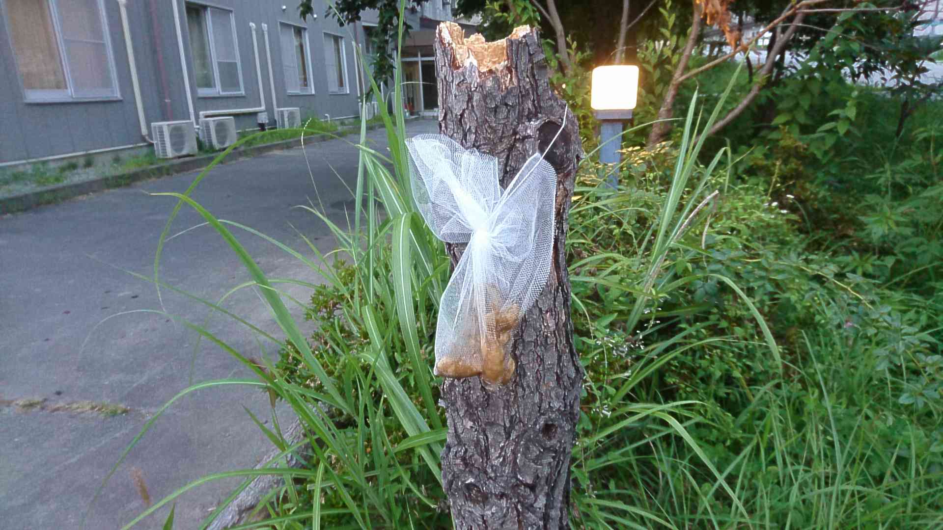 キャンプファイヤーの、準備です。 宿舎の画像です。 クワガタとりのえさをつけてみました。