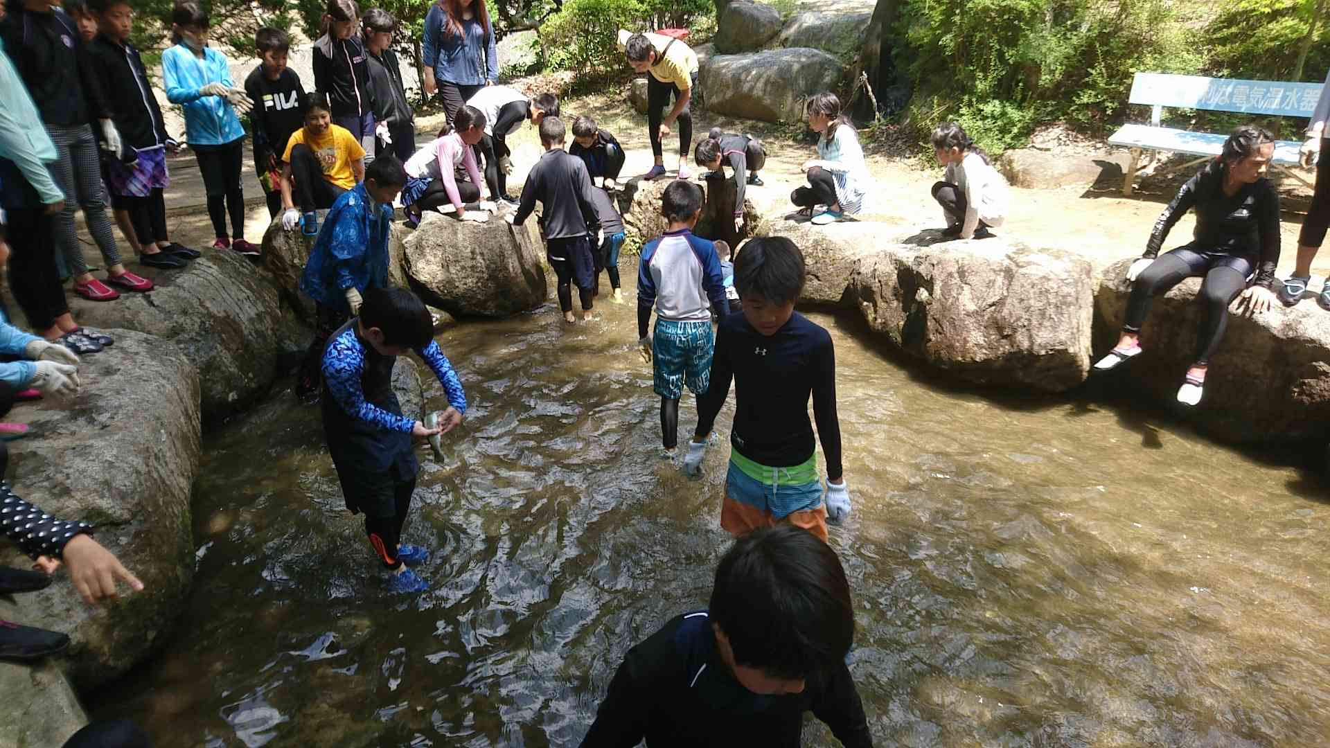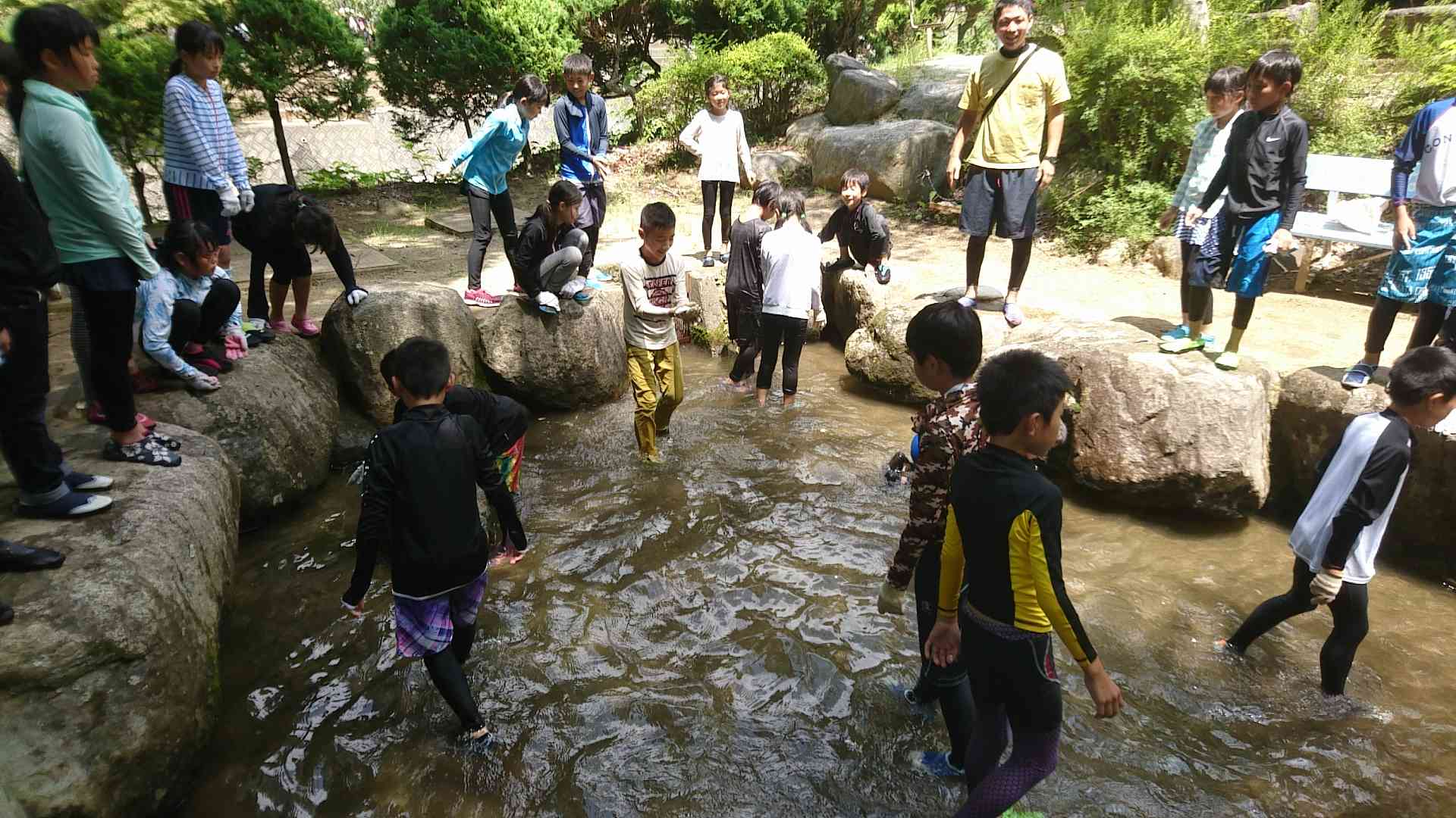 ニジマスつかみ キャーキャーいいながら 何とかつかみとりました。 このあと自分でさばきます。