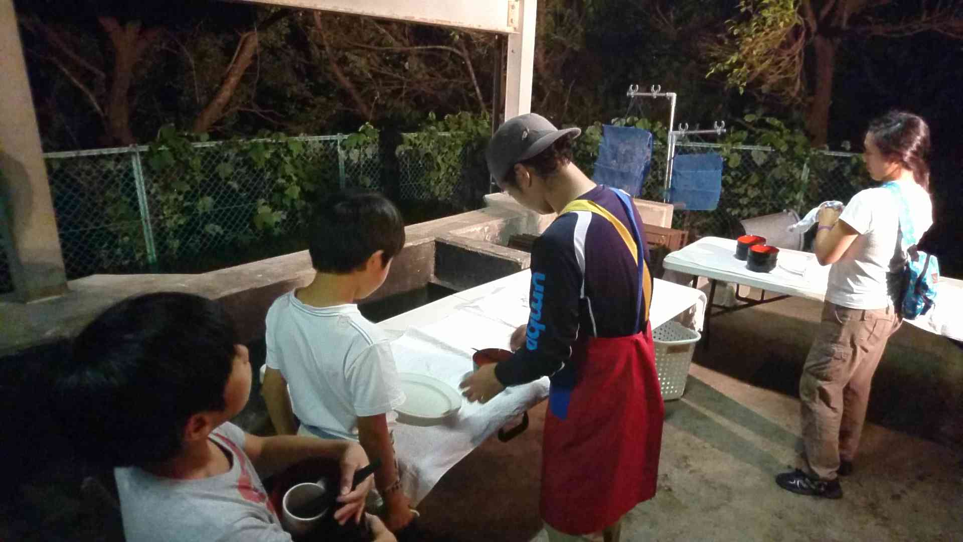 素晴らしい食べ方! そして夜の食器洗いです。 厳しいチェックをうけますので真剣に洗います。