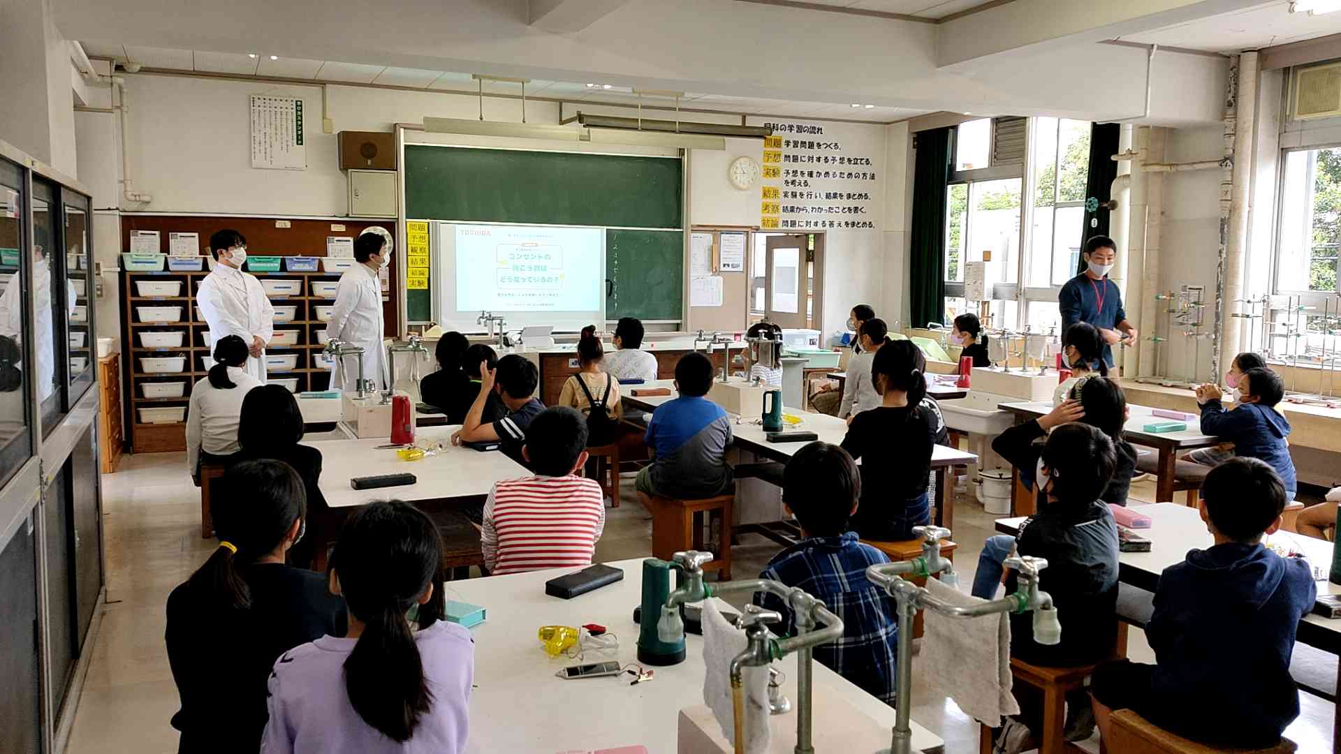 専門家の方のお話は納得が多いです。 返事したりお礼を言ったりすばらしい5年生の姿があります。 感染防止の意識を、高くしながら、ことしはじめての出前教室。 東芝様ありがとうございます。
