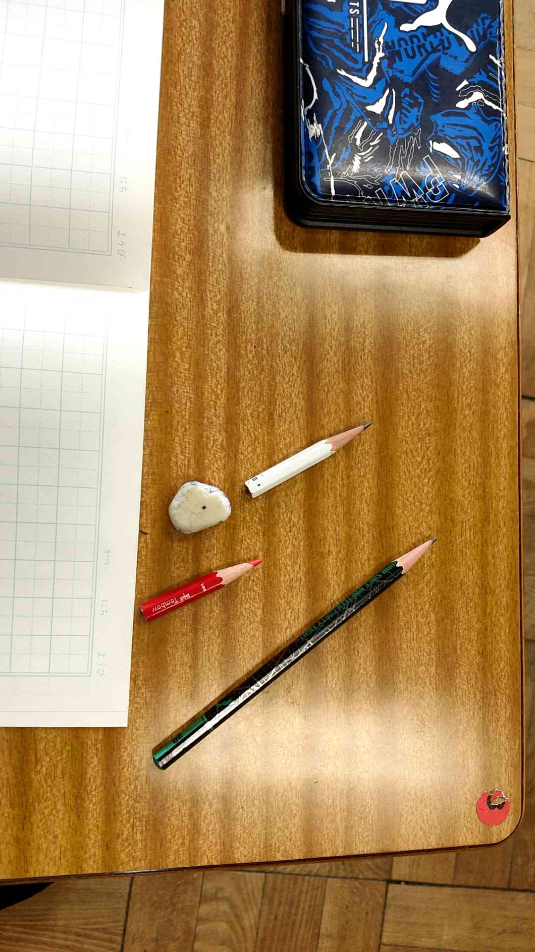 2年生の机上 研ぎ澄まされたきもちがつたわります 何に対してもするどく 短時間で吸収できるこどもの机 なるほどなーと思いました。
