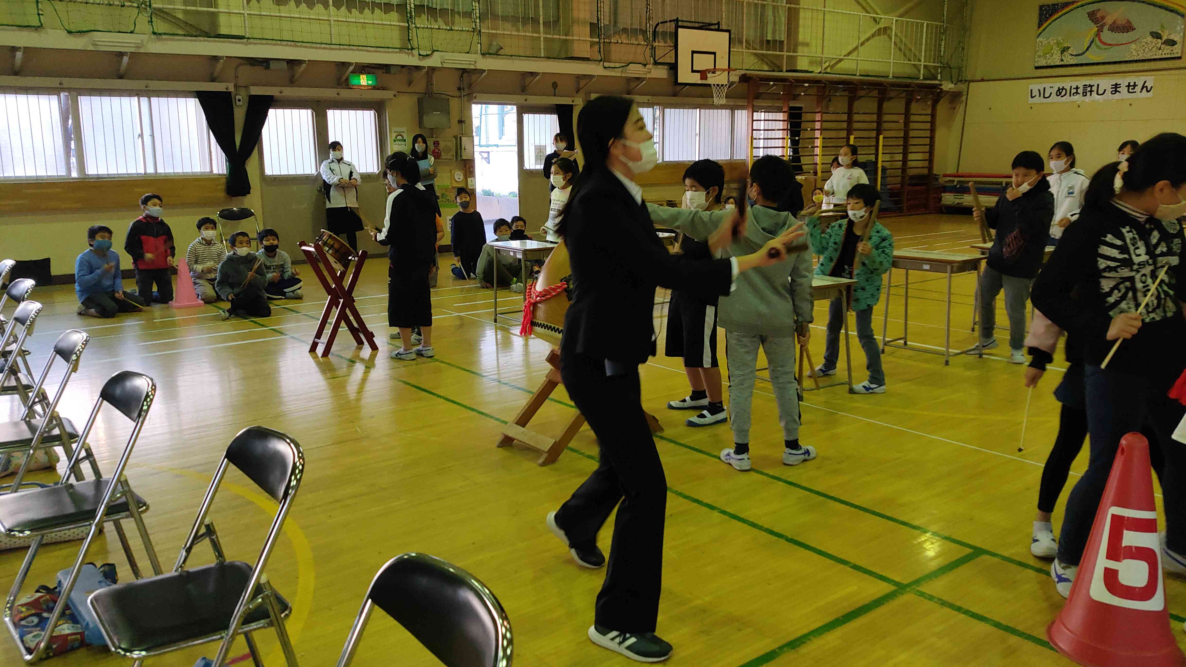 お祭りの音楽 和楽器を使って素晴らしい演奏です。 協力し合うこと リズムに乗ること このふたつの目標を全員が達成していました。すばらしいことです。