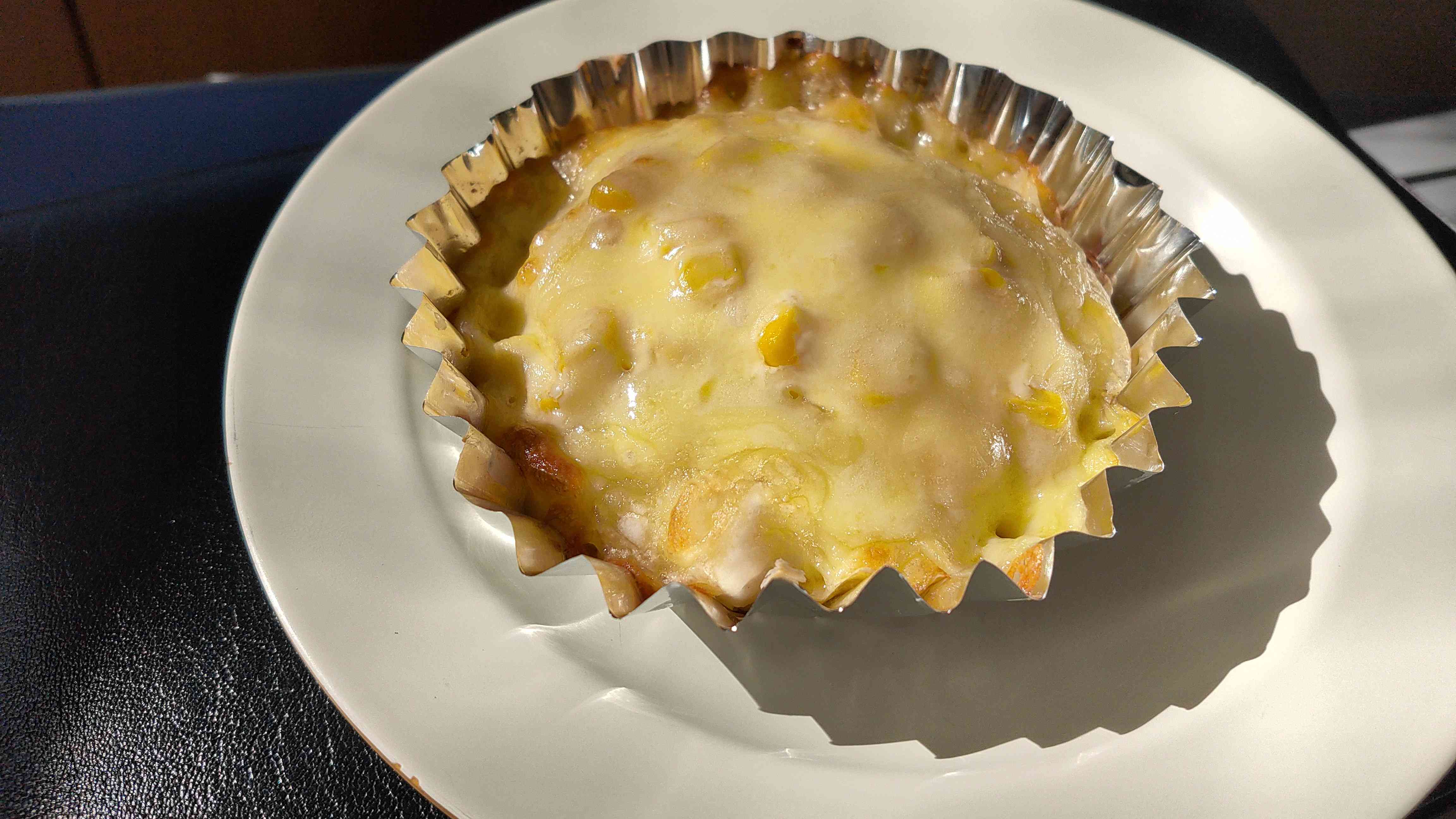 給食室のチャレンジです。マヨコーンパン。やわらかでおいしいです。いつか登場してくれないかな?