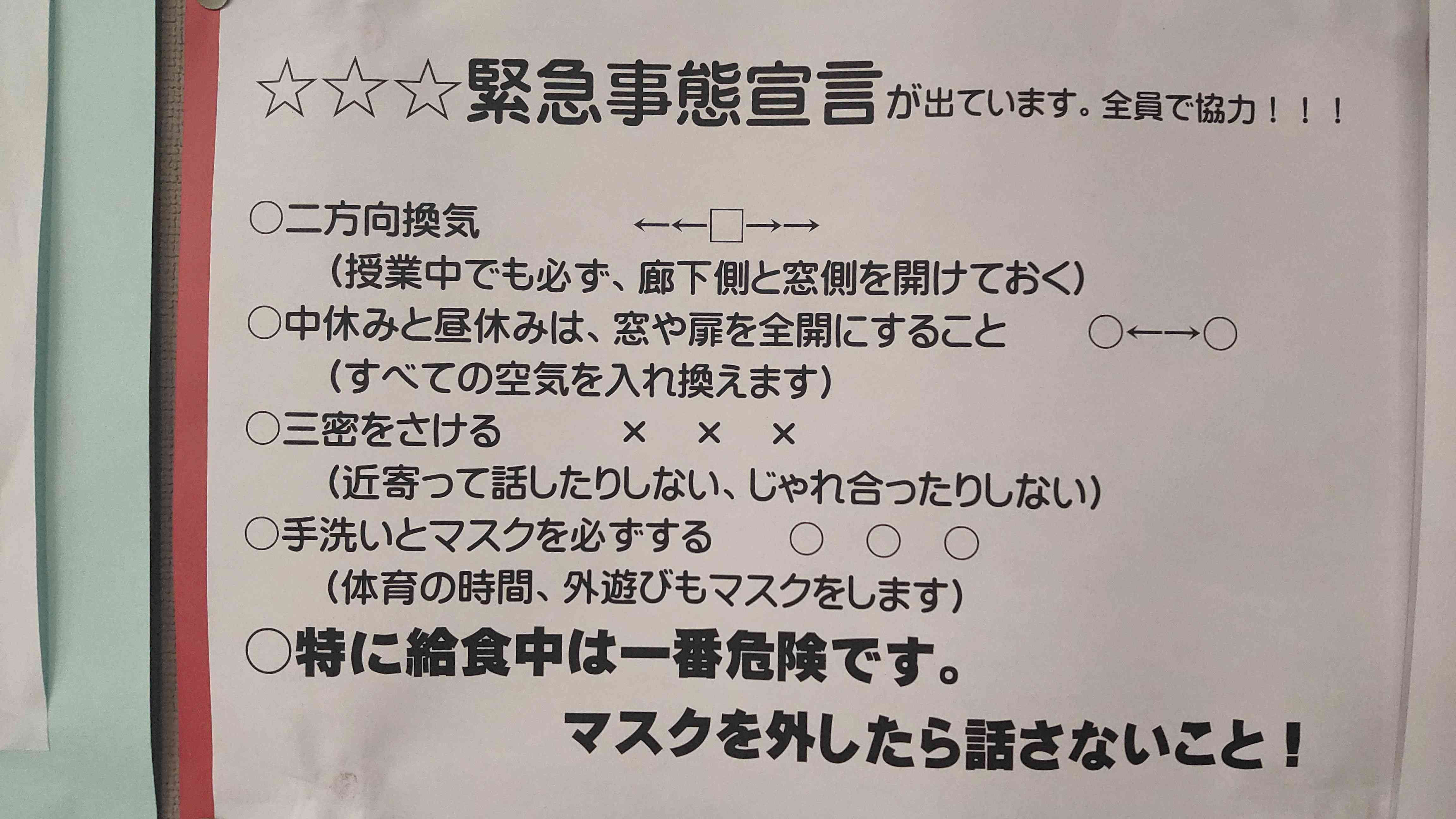 2ヶ月に渡る宣言下のくらし。 よくがんばりました。 あと一週間で、なんとか解除されそうです。 油断せず、でも、できることをすべてやっていきます。楽しい学習をします。 ご協力をおねがいします。