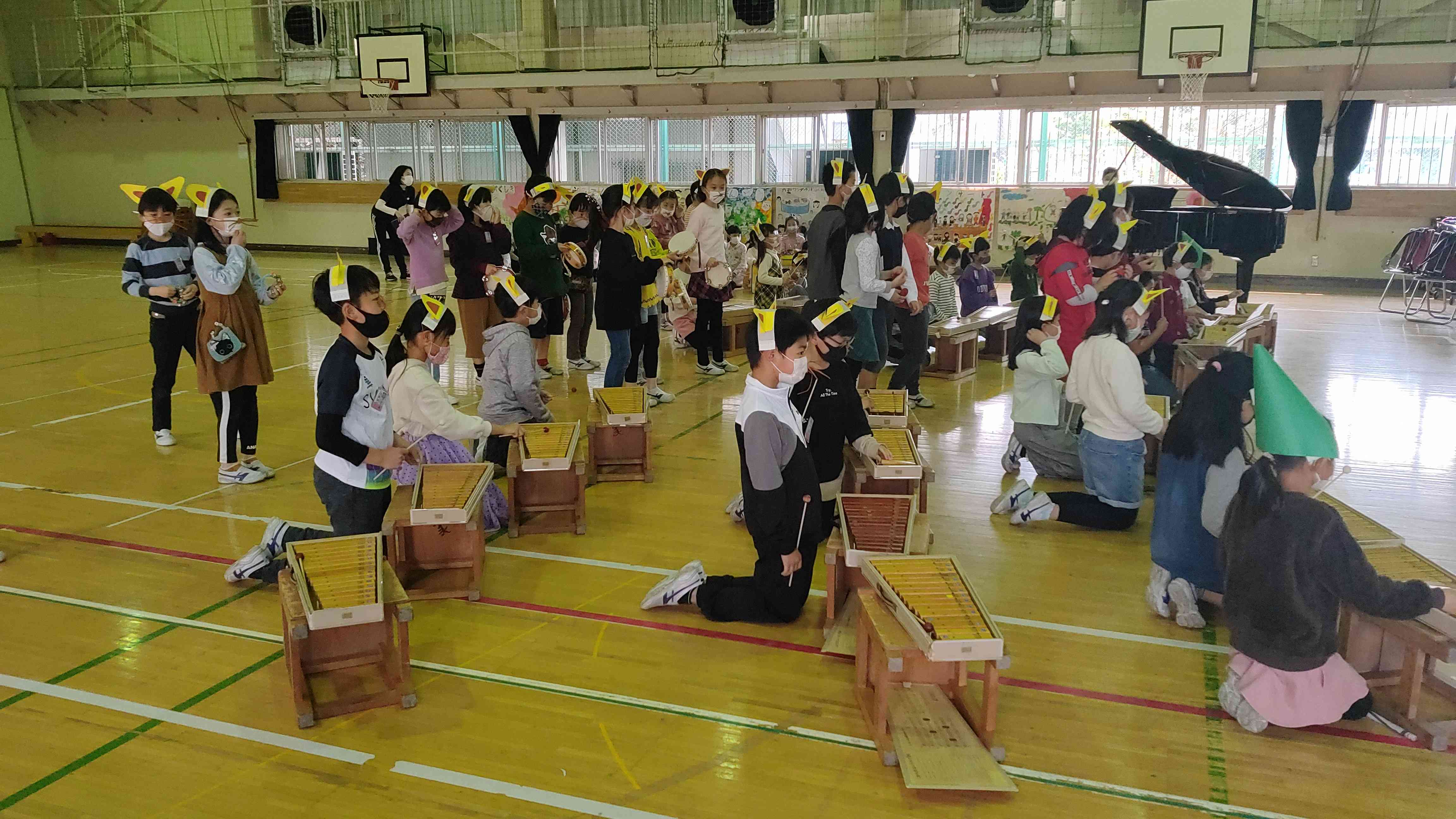 2年生が演奏とダンスを披露 木琴がとても上手にひびきました。