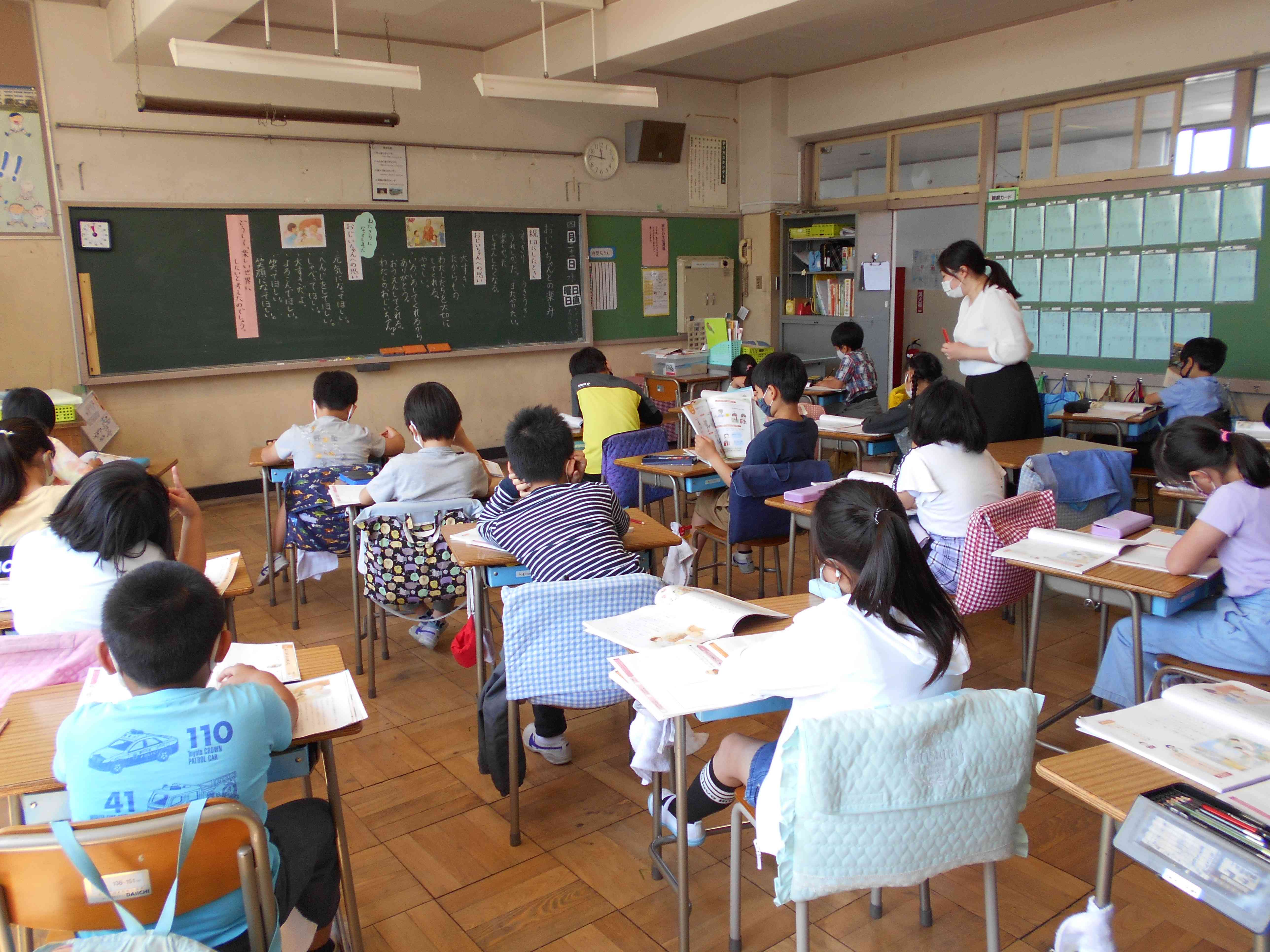 3年2組の道徳科「おじいちゃんとの楽しみ」の授業を見ました。寝たきりになってしまったおじいちゃんに毎日挨拶をしたり、学校での出来事などを話して聞かせたりすることを楽しみにしている女の子のお話です。女の子はおじいちゃんとの関わりを通して、みんなでお年寄りを大切にしてあげたら、さみしい思いをしているお年寄りがいなくなって、「楽しい世界」になると考えます。3年2組の子供たちは、女の子の気持ちを考えるとともに、自分が人に親切にしたときのことを思い浮かべ、どんな気持ちになったかを振り返りました。 「楽しい世界」とはお年寄りだけでなく、全ての人にとって楽しい世界でありたいものです。そして「楽しい学校」をどのように作っていくか、六砂小のみんなで考えていきたいです。【添付ファイル】