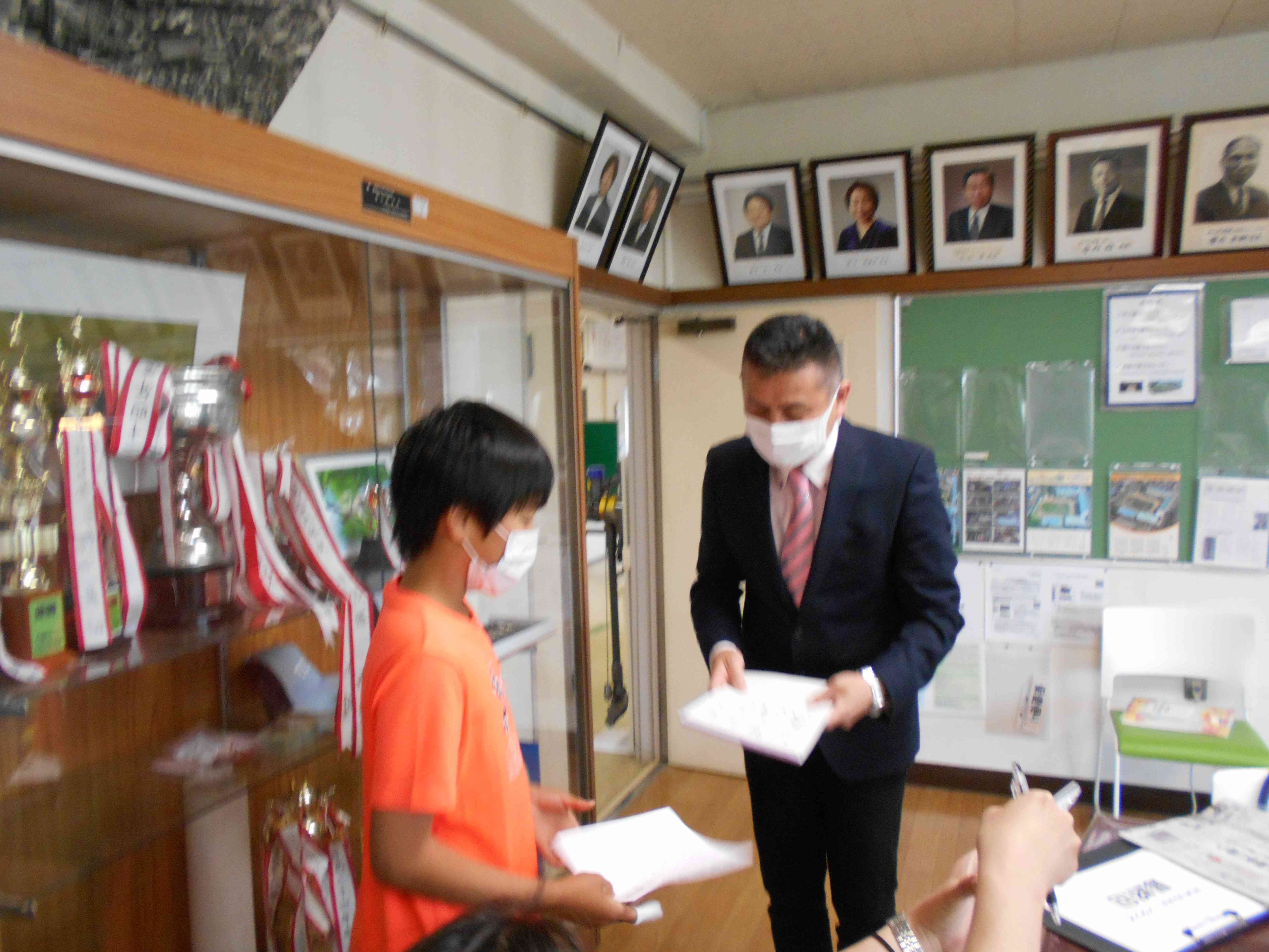 離任式に加瀬校長先生が来てくれました。他の先生方は、動画のメッセージやお手紙を送っていただきました。在校生を代表して二人の6年生がメッセージを読み、加瀬校長先生にお手紙を渡しました。その後に加瀬校長先生から六砂小の子供たちにお言葉をいただきました。子供たちは、お話を聞きながら、一緒に勉強をした日々を振り返り、心の中で感謝の気持ちを伝えていました。