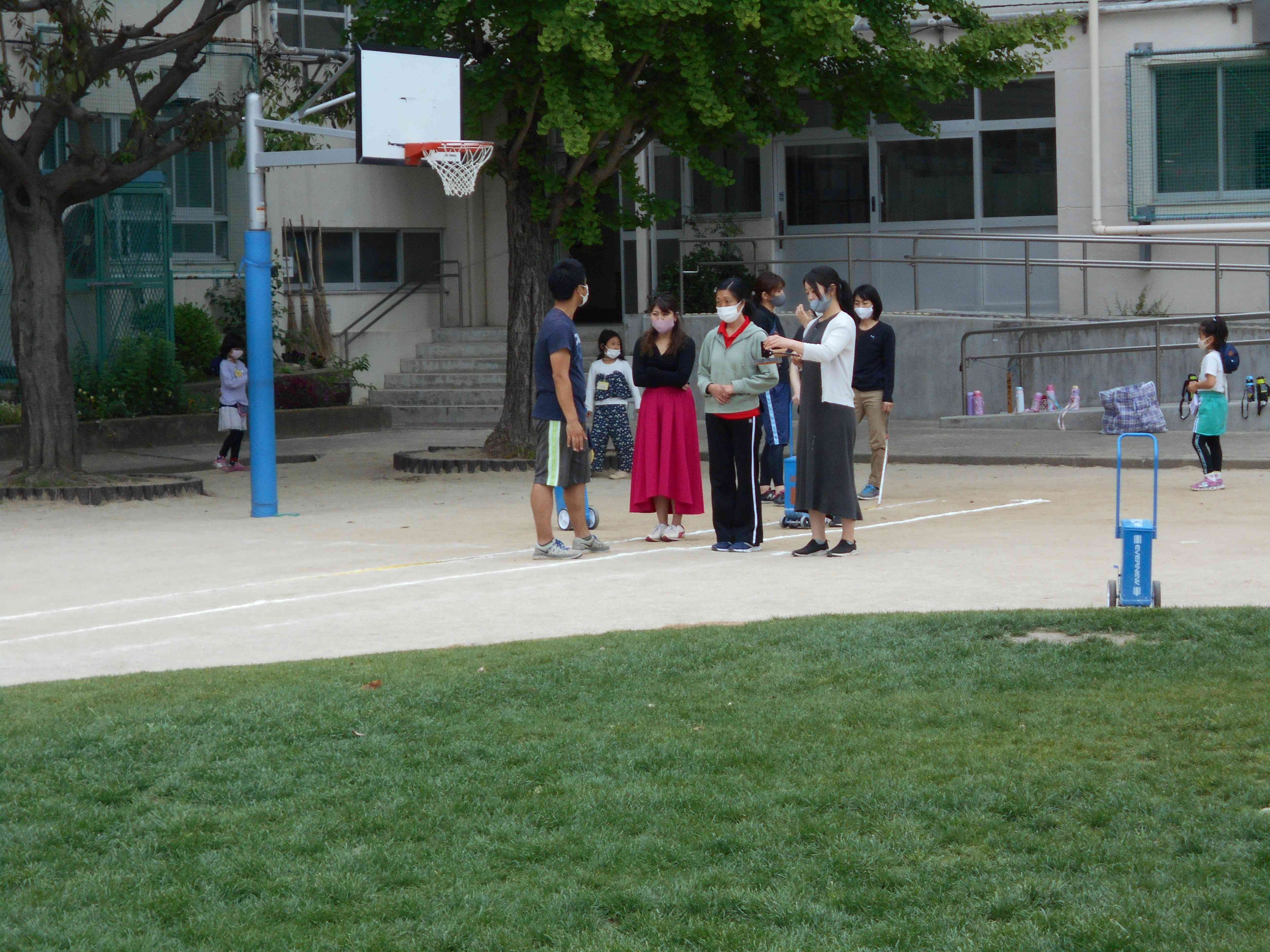 スポーツフェスティバルに向けて、会場作りの準備をしています。例年は児童席の後ろに保護者がいる形でしたが、児童と保護者を分け、さらに保護者の観覧席を広げて、密にならないようにしたいと考えています。