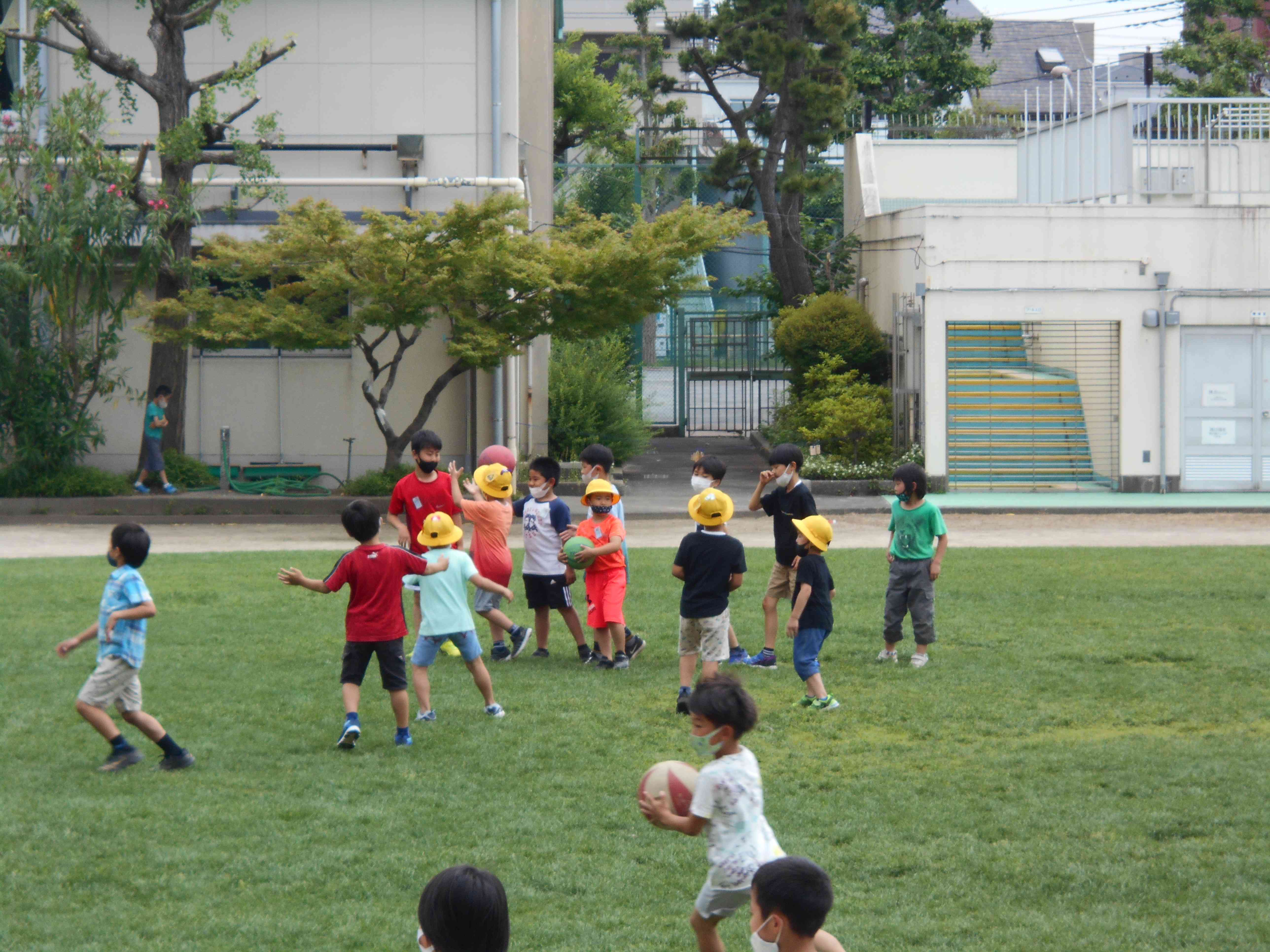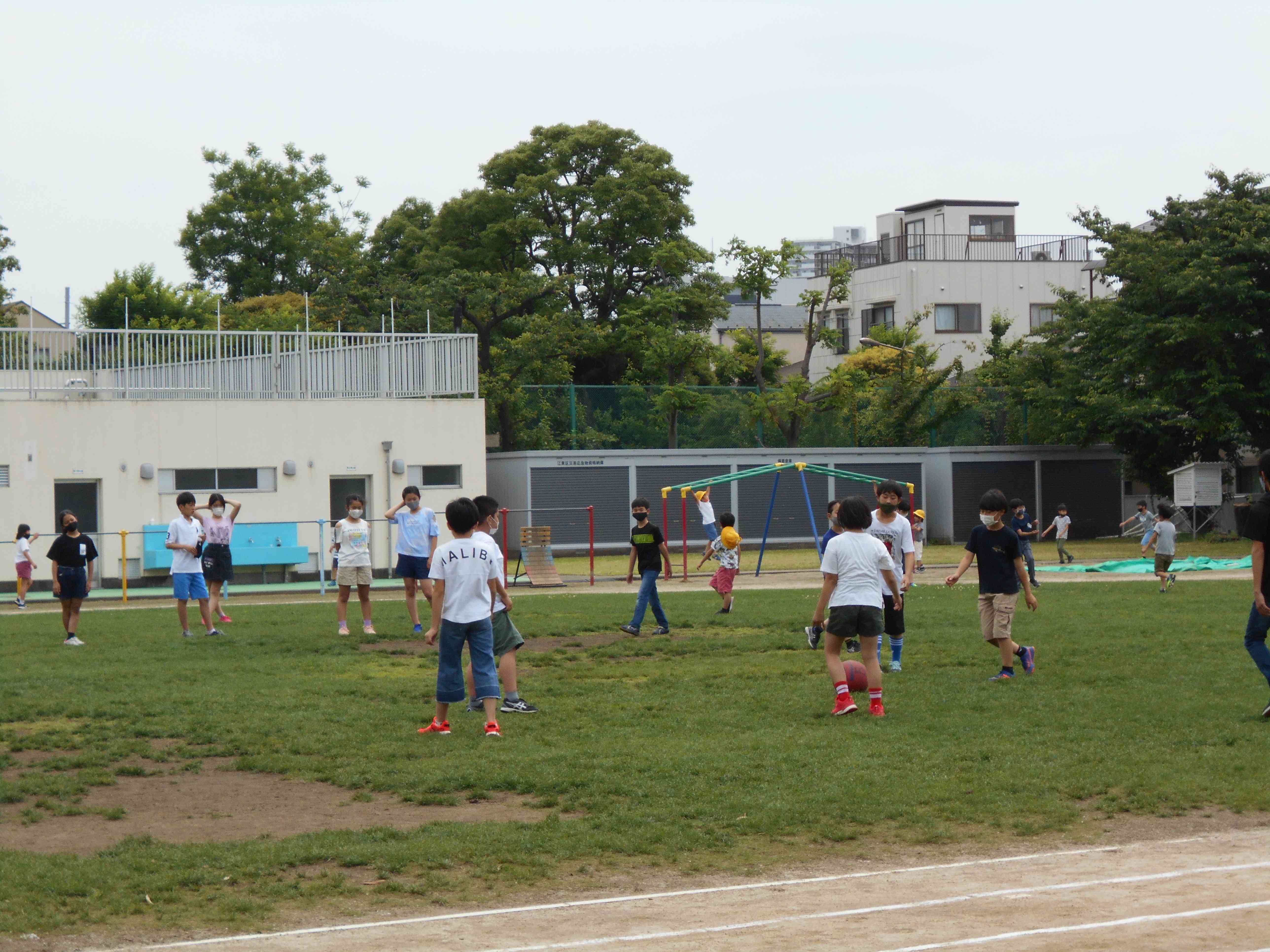 午前中にスポーツフェスティバルがあったのに、給食を食べて、昼休みには外遊びをしています。 子供たちは、元気いっぱいです。