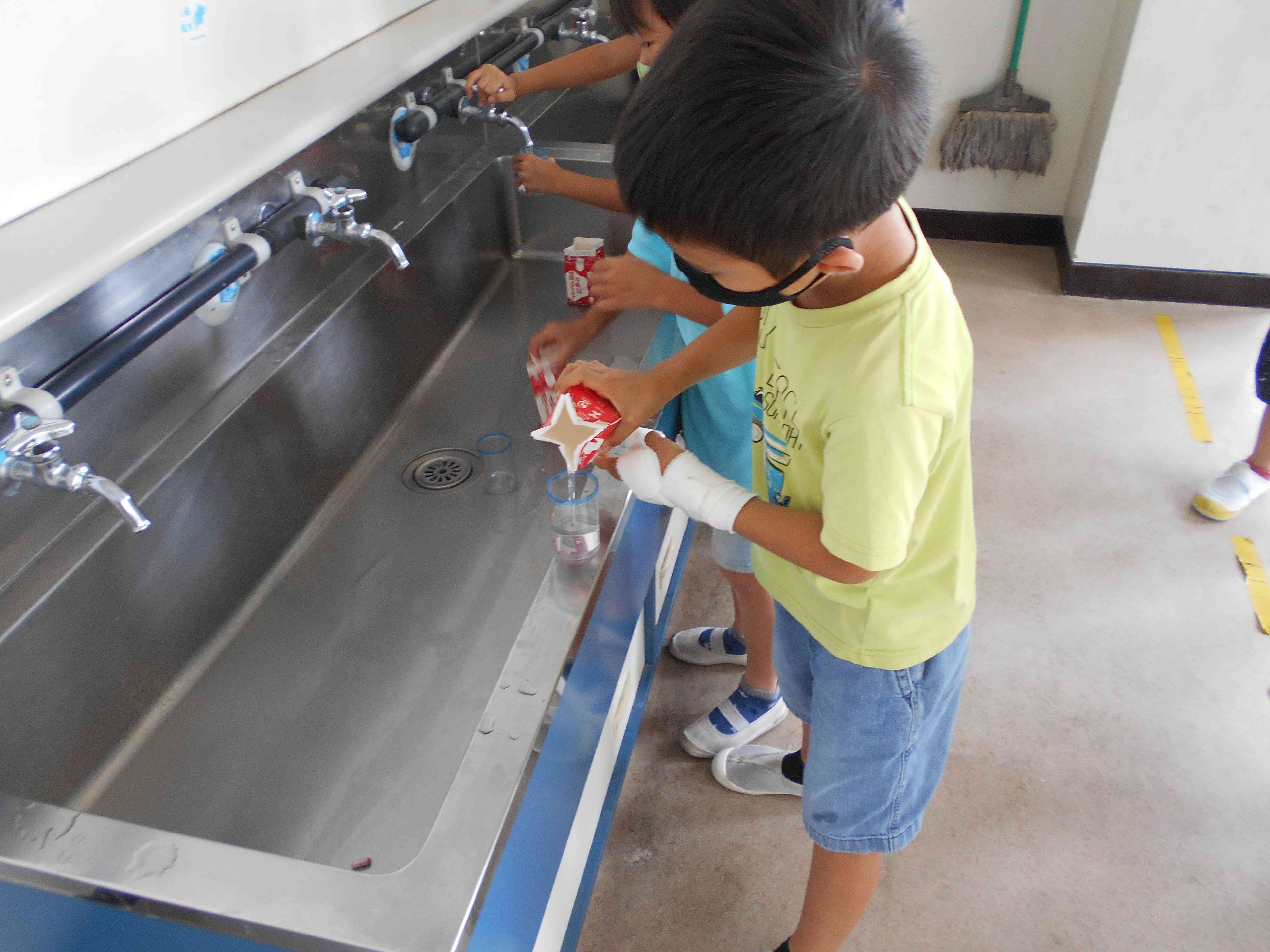 水のかさの学習をしています。給食のときに飲む牛乳は何dLなのかを確かめます。予想では1dLが多かったのですが、結果は2dLのようでした。しかし、牛乳パックの折り目のところまで水を入れると、2dLと、あと少しあります。あと少しを表すためにどうしたらよいかが次の課題でした。 子供たちは教科書で勉強する前に、すでにmLの単位を目にしています。ペットボトルや水筒、牛乳パックにも書いてあります。学校の勉強は、子供たちが生活の中で見たり学んだりしてきた知識を、科学的で概念的な理解へと深めていくことなのです。【添付ファイル】