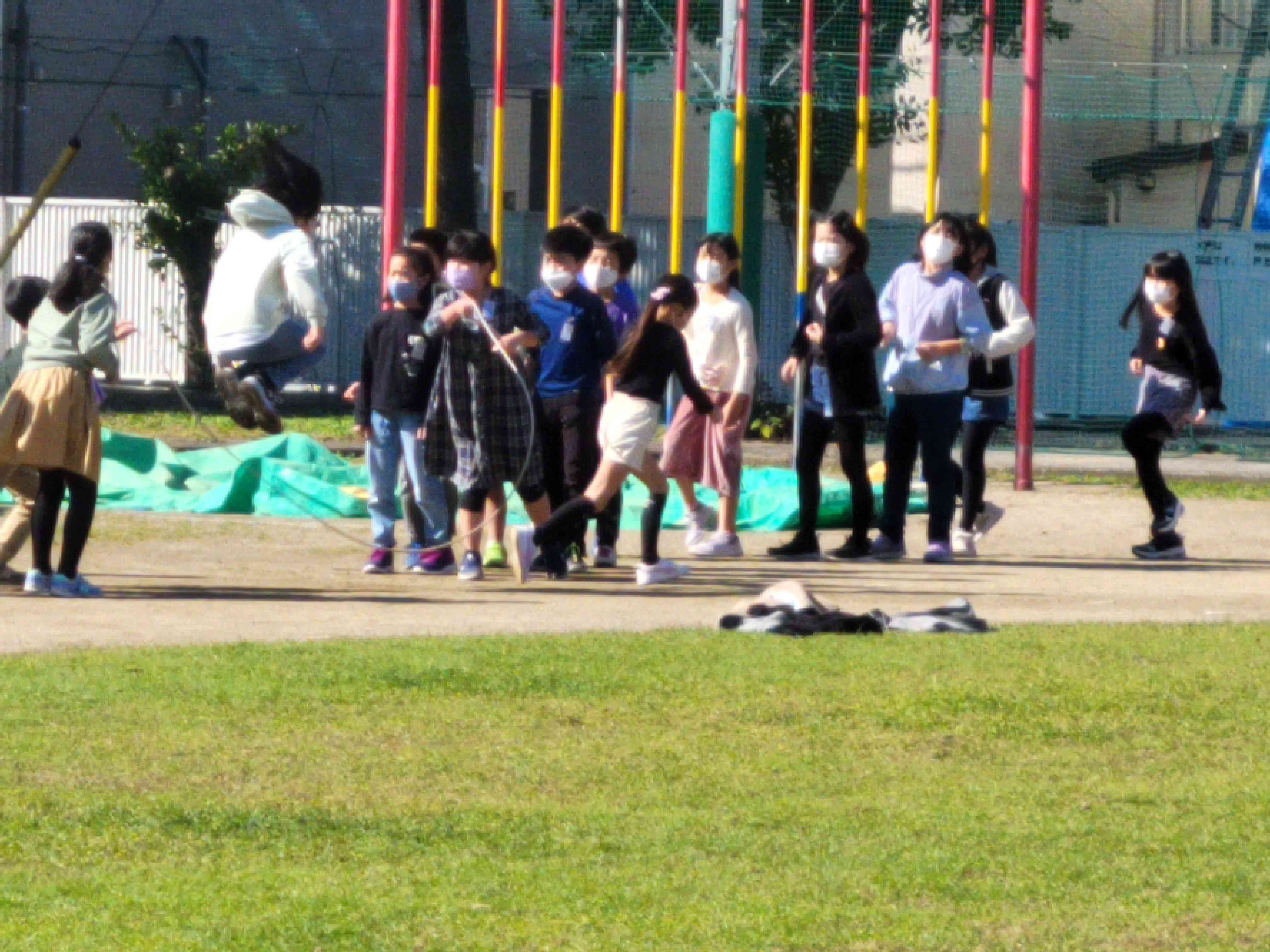 今日の中休みは長縄週間最終日で、記録会でした。 軽快な音楽にのせて、リズム良く跳んでいきます。 どの学級も、新記録を目指して最後まで頑張りました。 給食時間の放送では、最高回数を跳んだベスト3の学級と、 記録を伸ばしたベスト3の学級が発表されました。 一人一人が、仲間と共に、よく頑張りました!