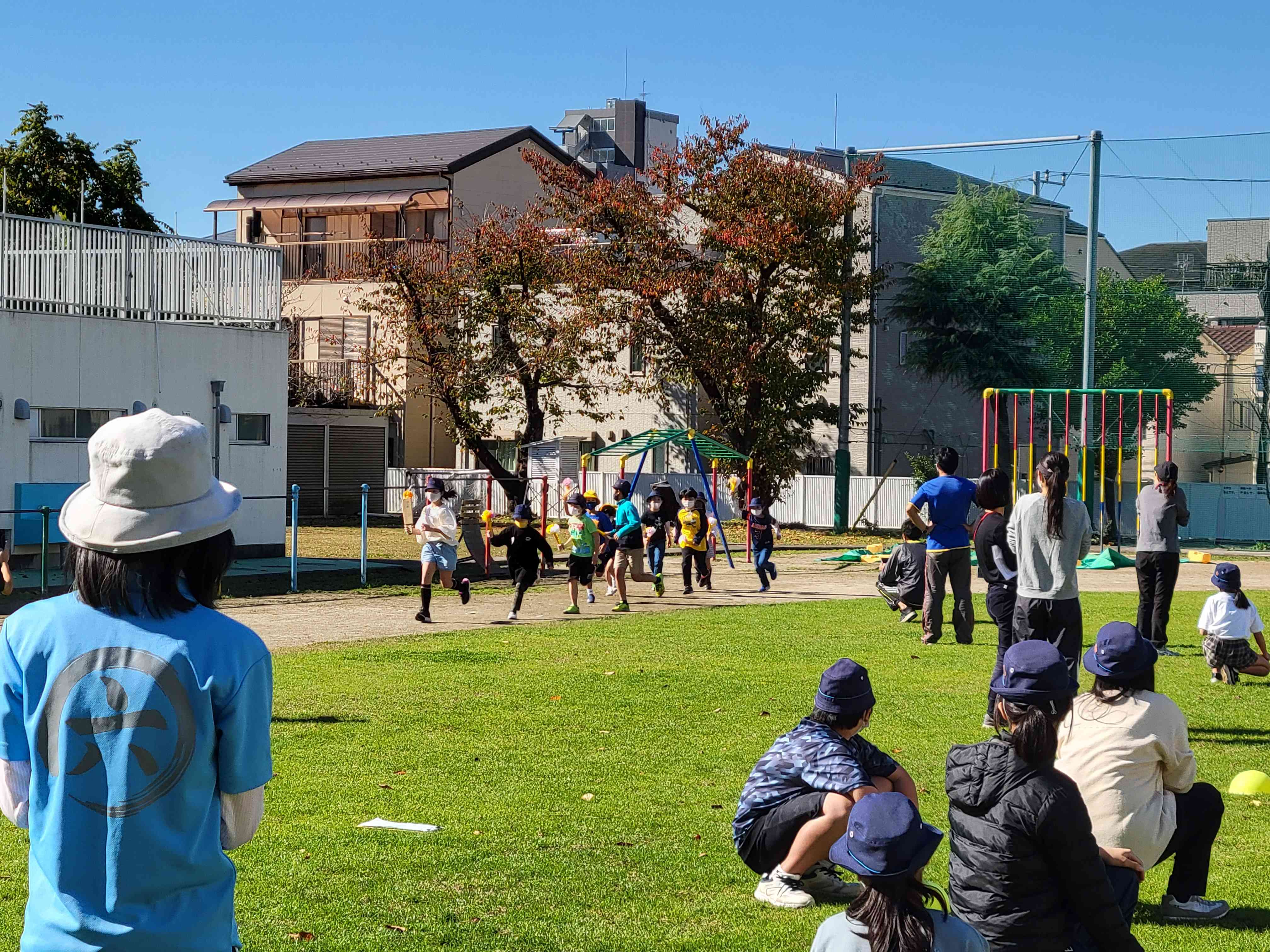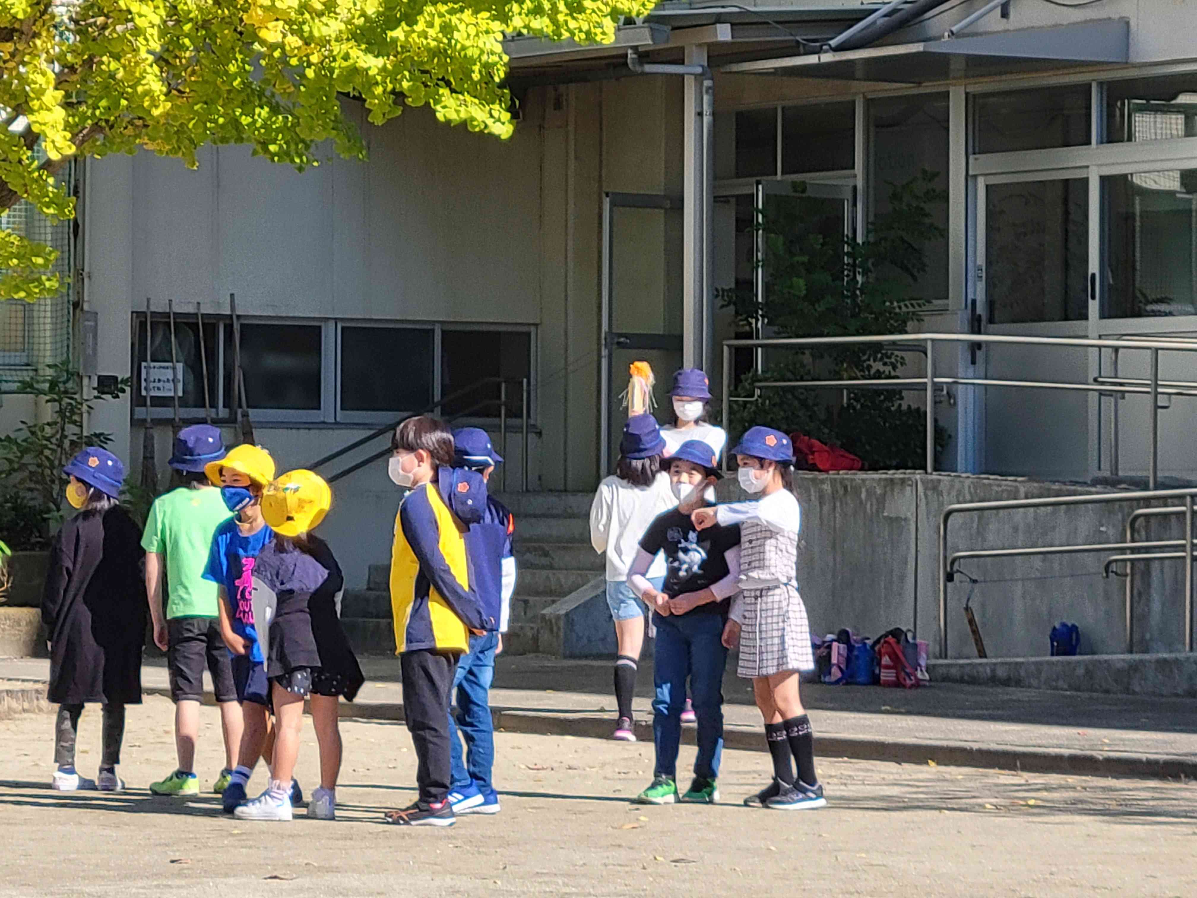 なかよし班の代表者が聖火を掲げて校庭をぐるっとまわります。 集められた聖火は、その後……?