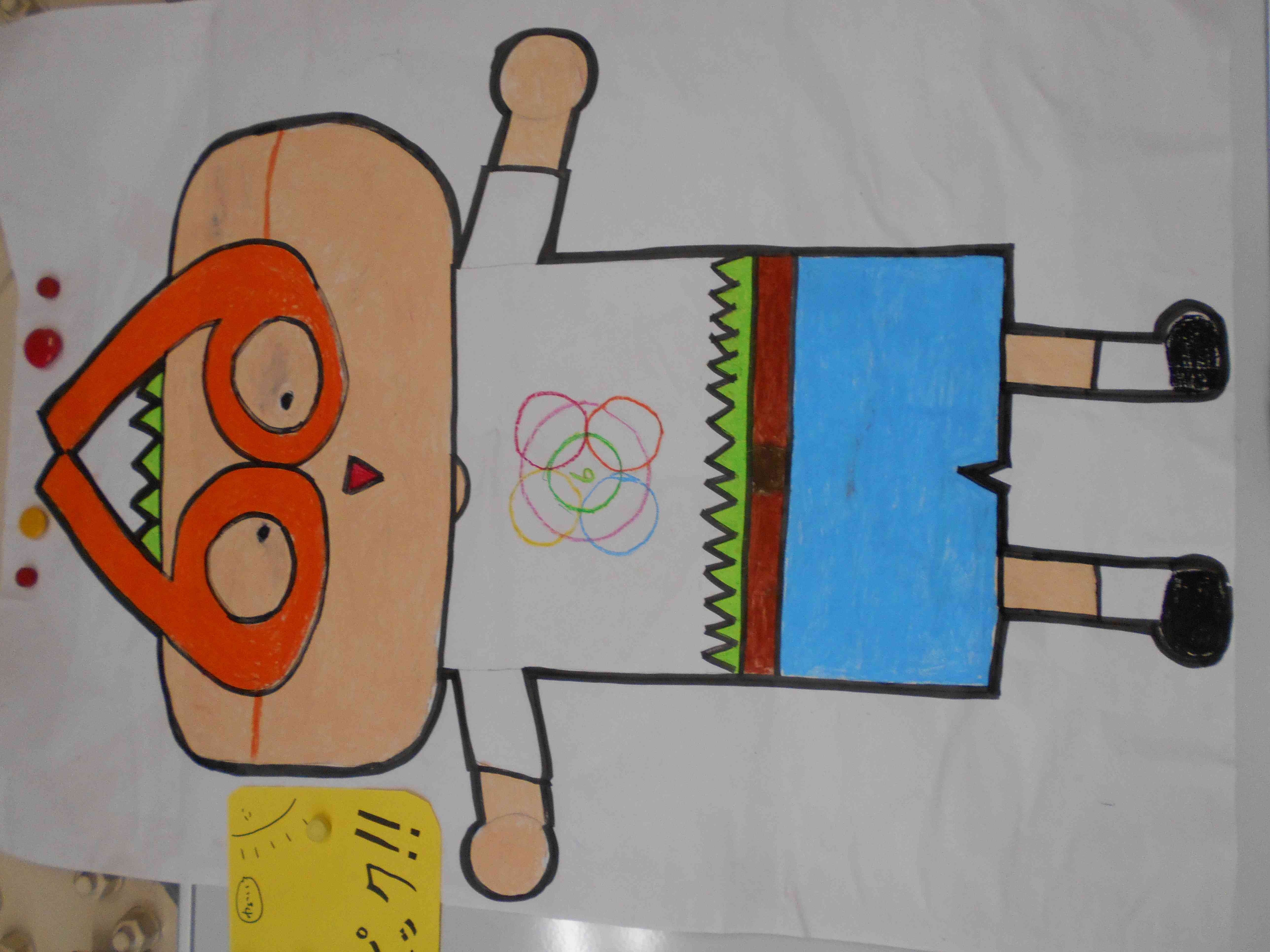 6年生が、ロクリンピックのロゴとマスコットを考えてくれたので紹介します。 「ロクリンピックロゴ」 ・円を6つ描き、その中に六砂の6、ロクリンピックの6など、たくさんの思いがあります。そして、この円の色には1色ずつの思いがあります。 ・真ん中の緑ときみどりは、六砂の芝生を表しています。 ・黄色は、友達の大切さ、友情を表しています。 ・赤は、六砂の主事さんたちを表しています。 ・水色は、にごっていない、とてもきれいな水を表しています。 ・オレンジは、先生たちがとても優しく、お友達みたいなところを表しています。 ・ピンクは、六砂小の温かさを表しています。 ・六砂小の先生、友達、主事さん、事務の先生などの温かさが、六砂のいいところだと思います。この7色が集まると、六砂のいいところずくめなロゴです。 「ロクリンピックマスコット 六之助(ろくのすけ)」 1 見た目は子供! 中身はおっさん! 2 年齢は66さい 3 髪の毛は芝生 4 かっこいいメガネをかけている(モテモテ) 5 服にロゴが付いている(ナイスなセンスだね) 6 少しカブみたい(でも、めちゃめちゃかっこいい!) 7 好きなことは、芝生の周りを散歩したり、みんなの頑張っている姿を見たりすること!!! 8 嫌いな食べ物は、昆虫ステーキ!! 9 嫌いな人は、悪いことをしている人たち(クール)【添付ファイル】