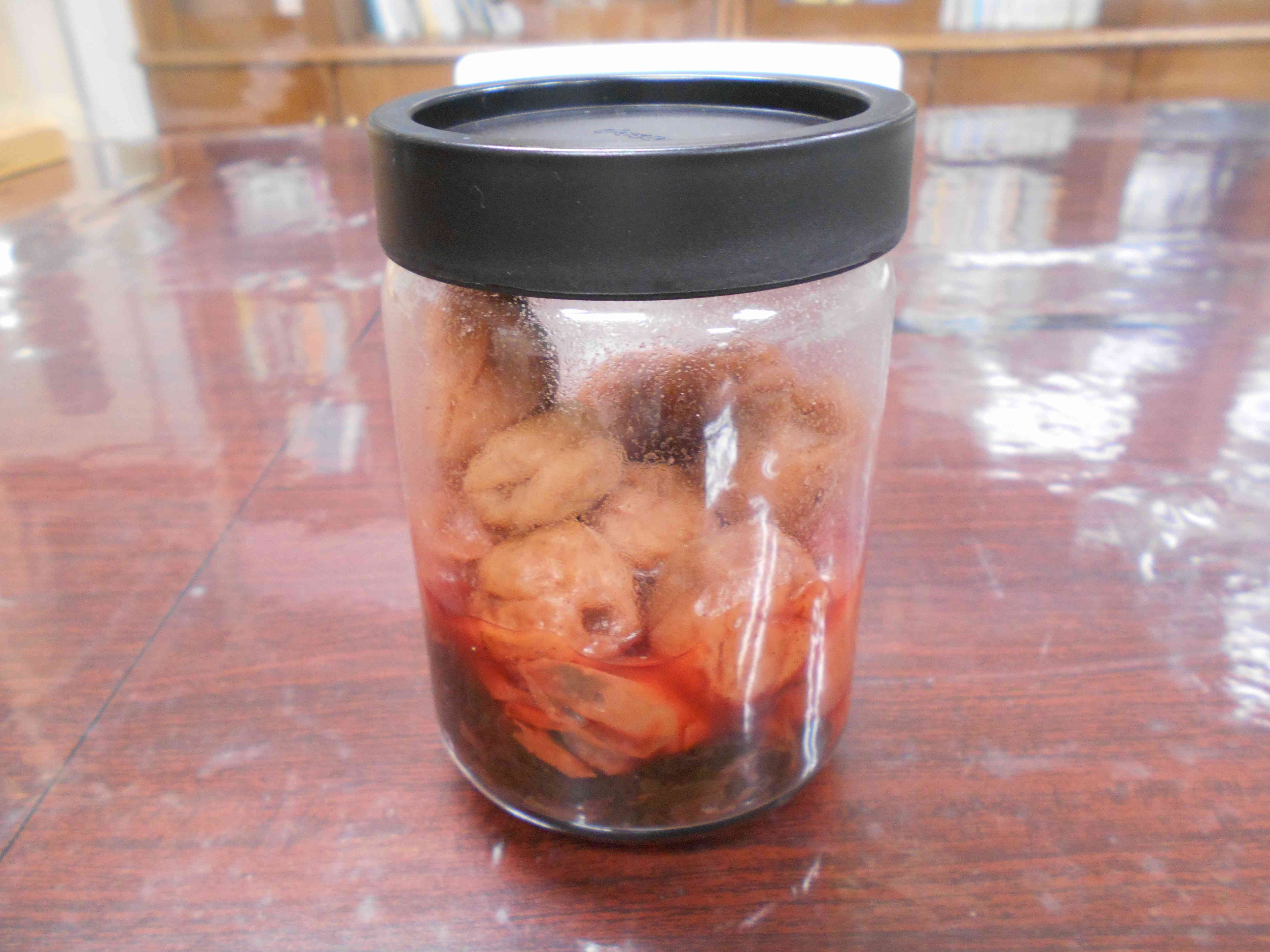 夏休みの宿題の中で一番嫌いなものに『読書感想文』や『自由研究』をあげる人が多く、その理由は、「どう書いたらよいかわからない」とか、「何をしたらよいかわからない」と答える人が多いそうです。そして、そういう宿題よりもプリントやドリルや夏休みのワークの方が良いと言います。皆さんはどうですか。今年は先生方にお願いして、読書感想文は学校で書くことにして、自由研究は9月5日に持ってくることにしました。去年の夏休みより、少しは宿題のことを忘れて、楽しむことはできたでしょうか。 さて、私が夏休みの後の学校生活で楽しみにしているのは「夏休み作品展」です。今年はどんなことを調べたり、作ったりしたでしょうか。作品展は9月12日から始めます。自分のクラスの人だけでなく、他のクラスや他の学年の人たちが、どんなことを調べたり作ったりしたかを見て、楽しんでください。 また、自由研究というと、夏休みにやることと思う人がいるかもしれませんが、普段から自分が興味をもったことを調べたり作ったりすることもできます。これは私が6月から7月に、六砂小の梅の実を使って作った『梅干し』です。先日の土曜日には、傷ができて値段が安くなった梨を農家から買ってきて、梨ジャムを作りました。梅干し作りもジャム作りも、今年初めてやったことです。皆さんも、自分で興味をもったことや、やりたいと思ったことにどんどん挑戦してください。 校長 景山賢治 ※写真1は「六砂梅」です。塩分控え目で、おいしくできました。 ※写真2は芝生の上で食事中のムクドリです。いつも50羽ほどいます。食べているのは虫でしょうか、ミミズでしょうか。【添付ファイル】