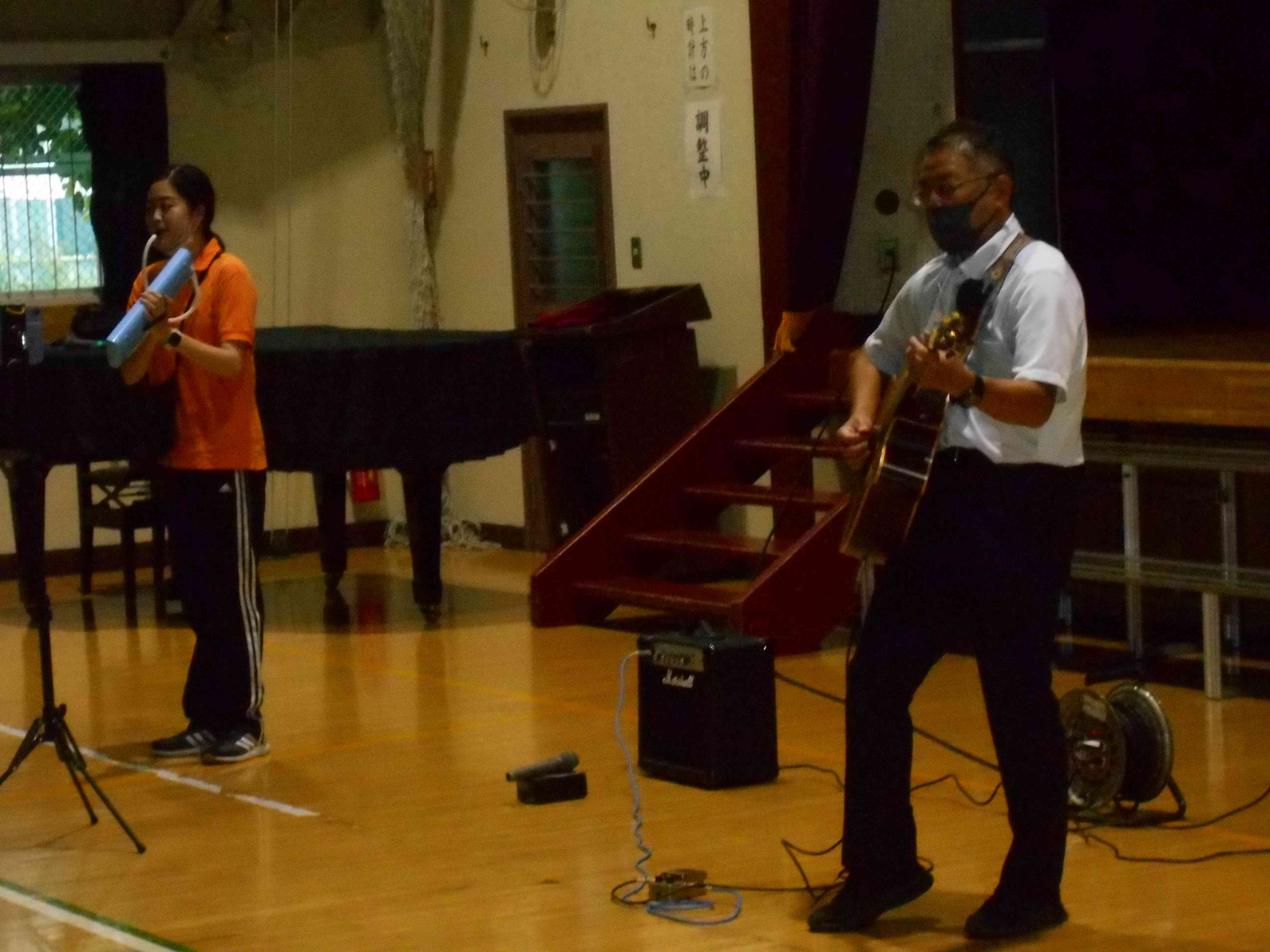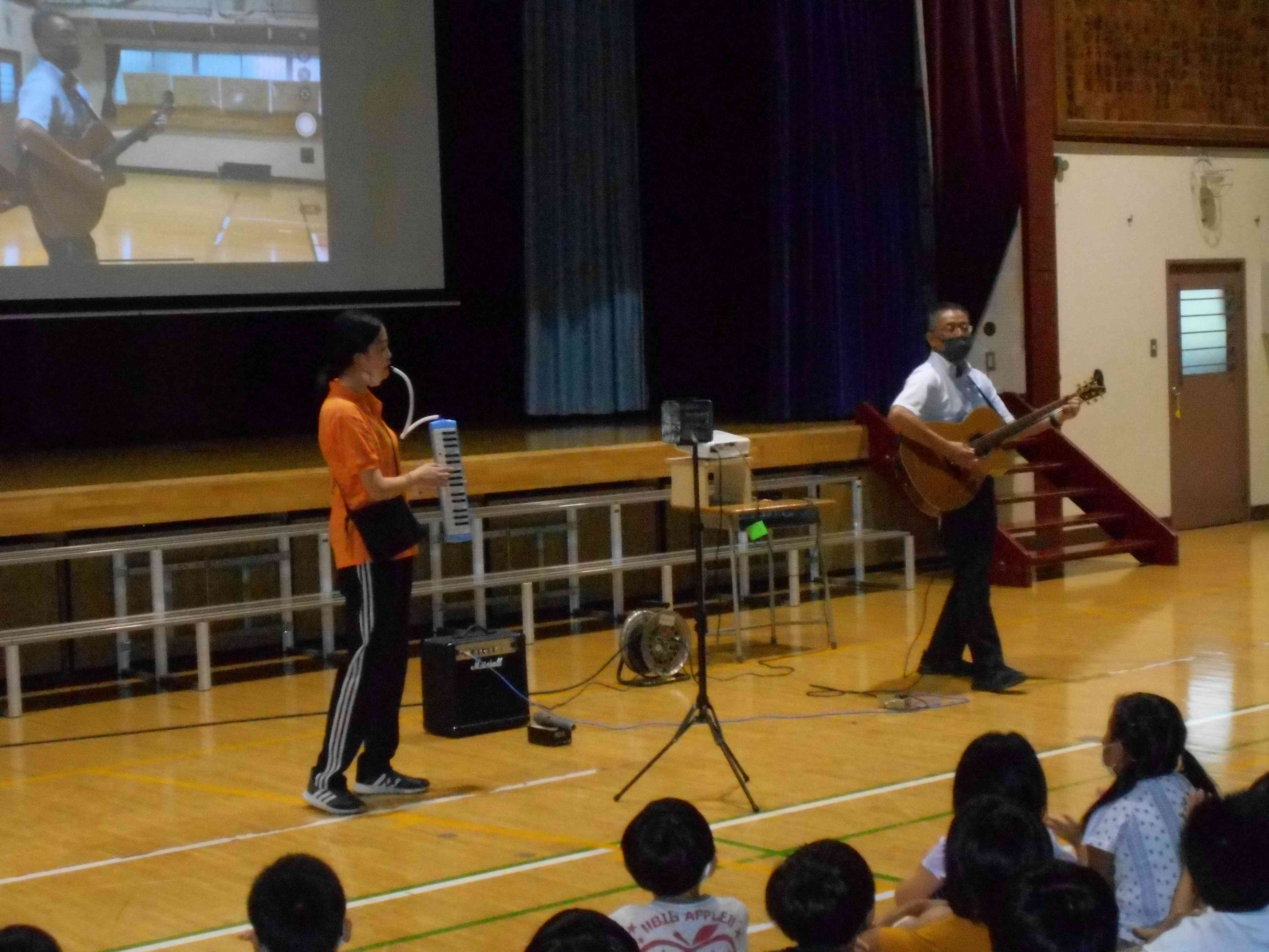 今日は、体育館で副校長先生のギターの演奏を聴きました。 体育館に響き渡る素朴で美しい音色に、子供達は音も立てずに真剣に聴き入っていました。