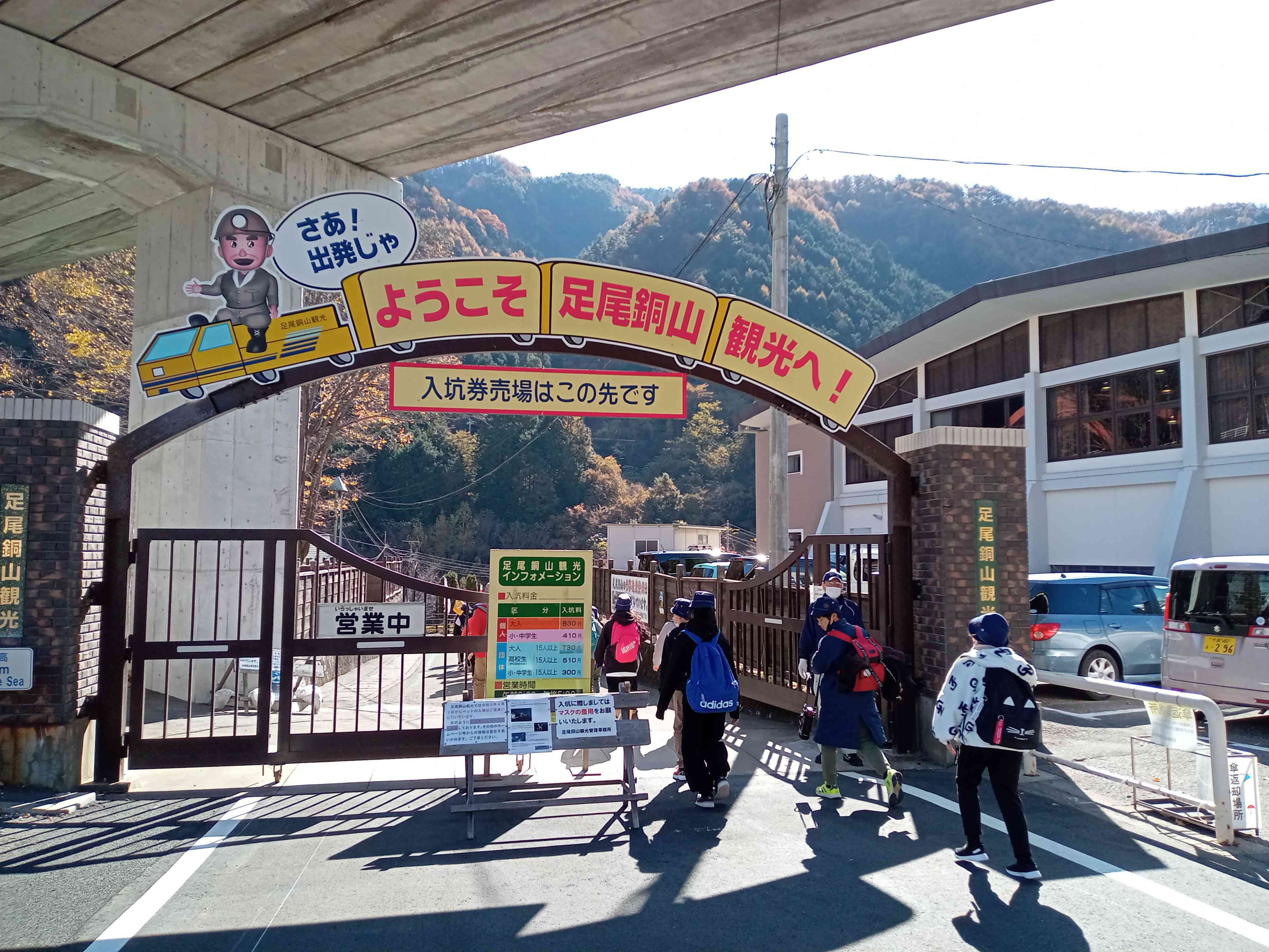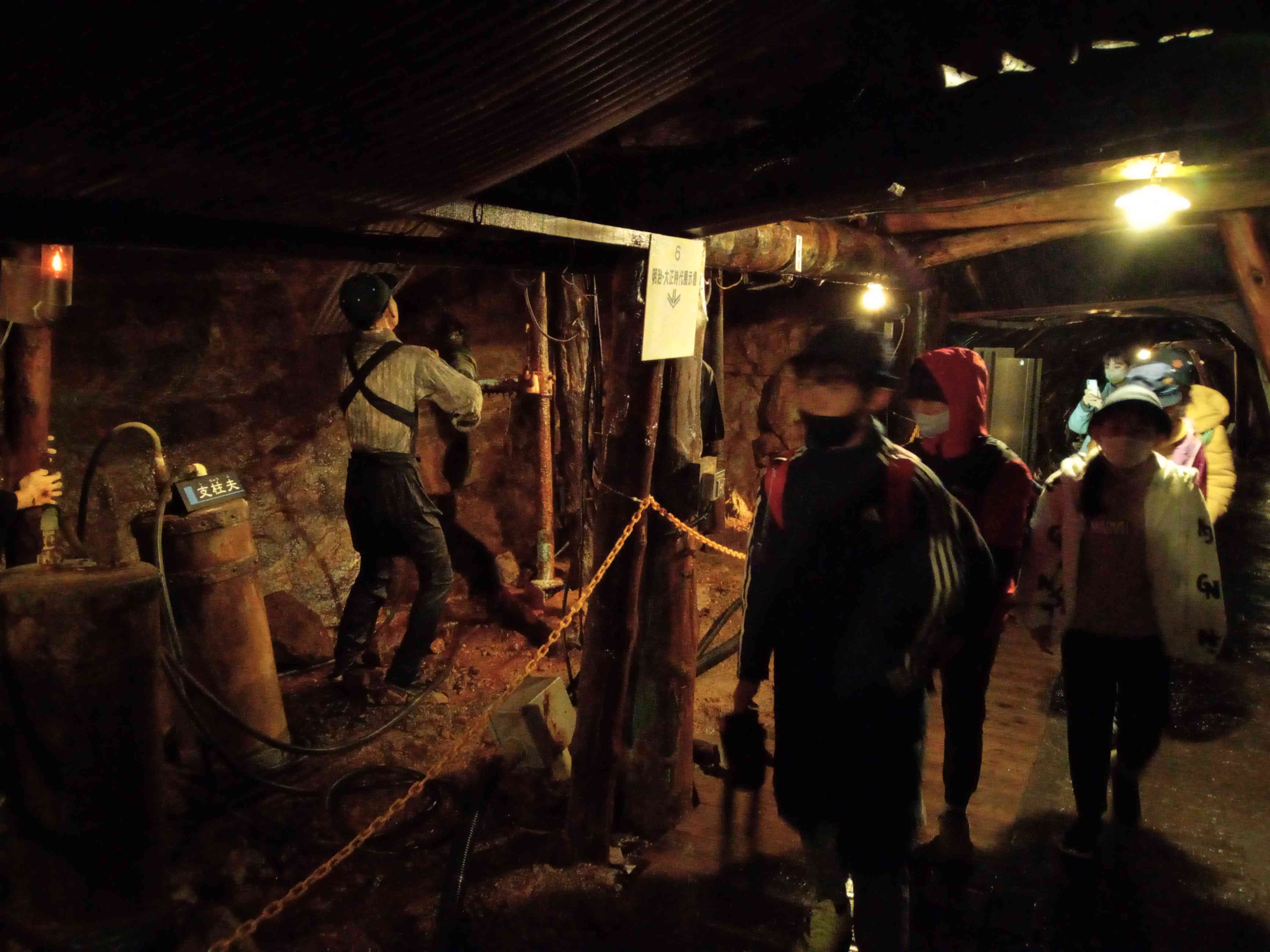 銅山観光です。トロッコに乗って坑道へ。外は温かいけど、中は少し涼しいです。