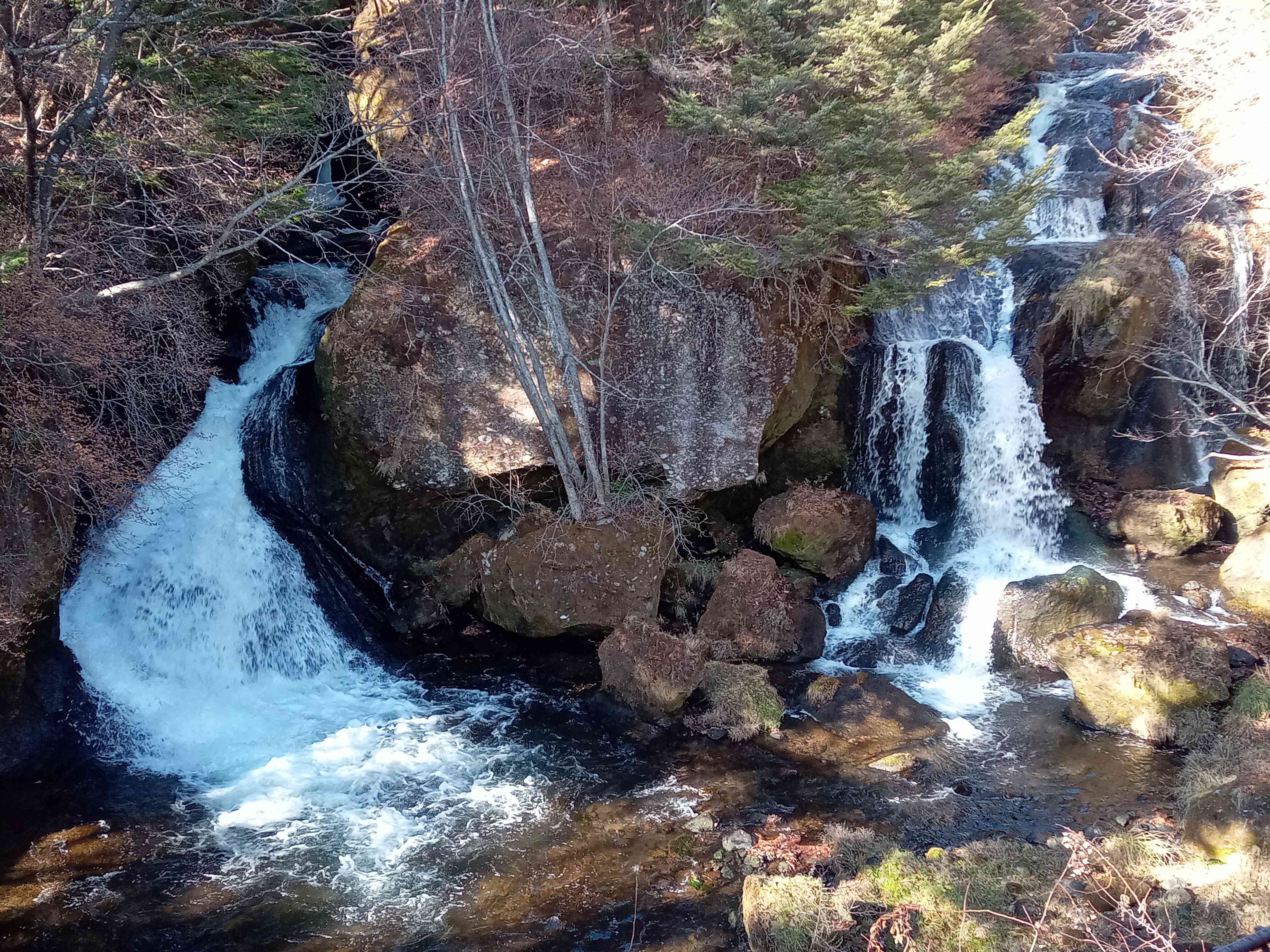 ハイキングのゴールは竜頭の滝。滝より団子です。食べた後に滝を見ました。