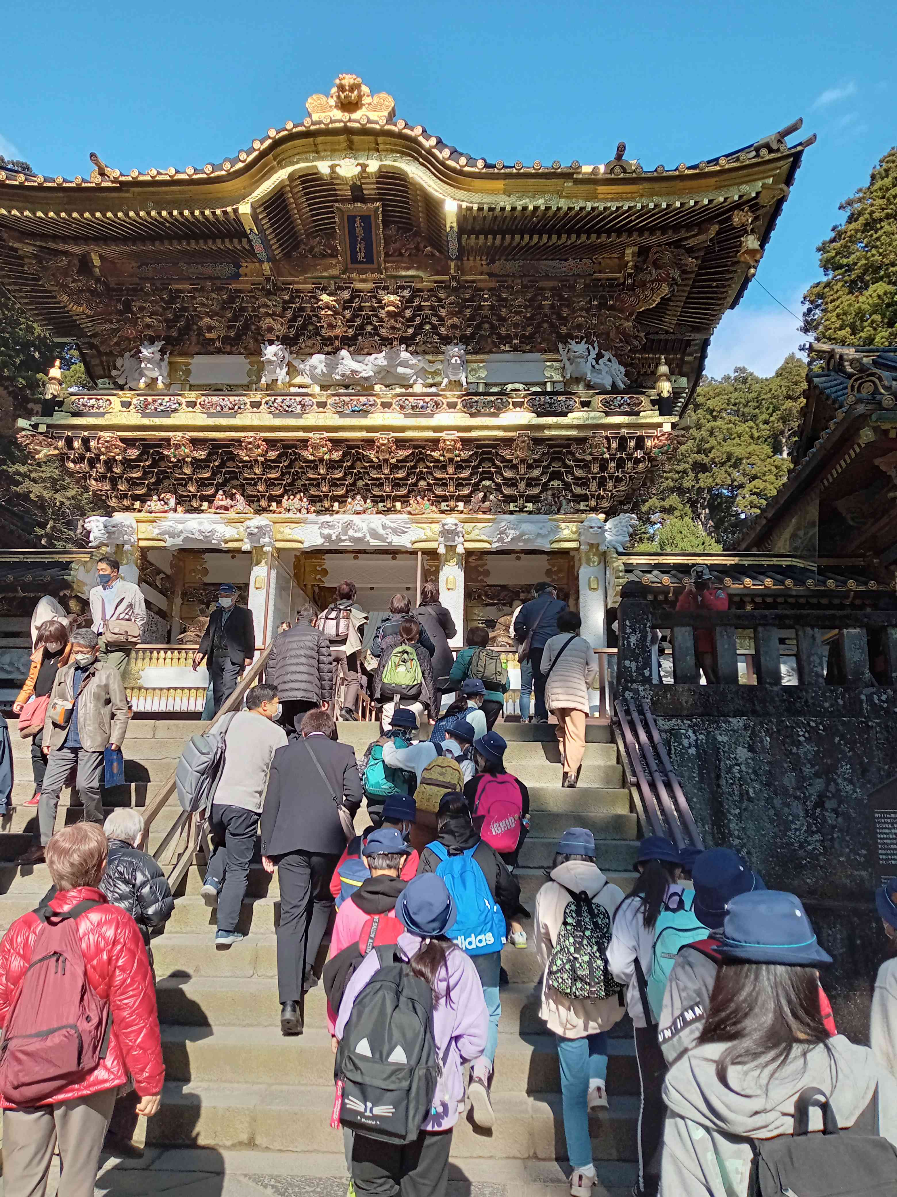 東照宮に来ました。鳴龍の声を聞き、眠猫をみて、徳川家康のお墓をお参りしました。