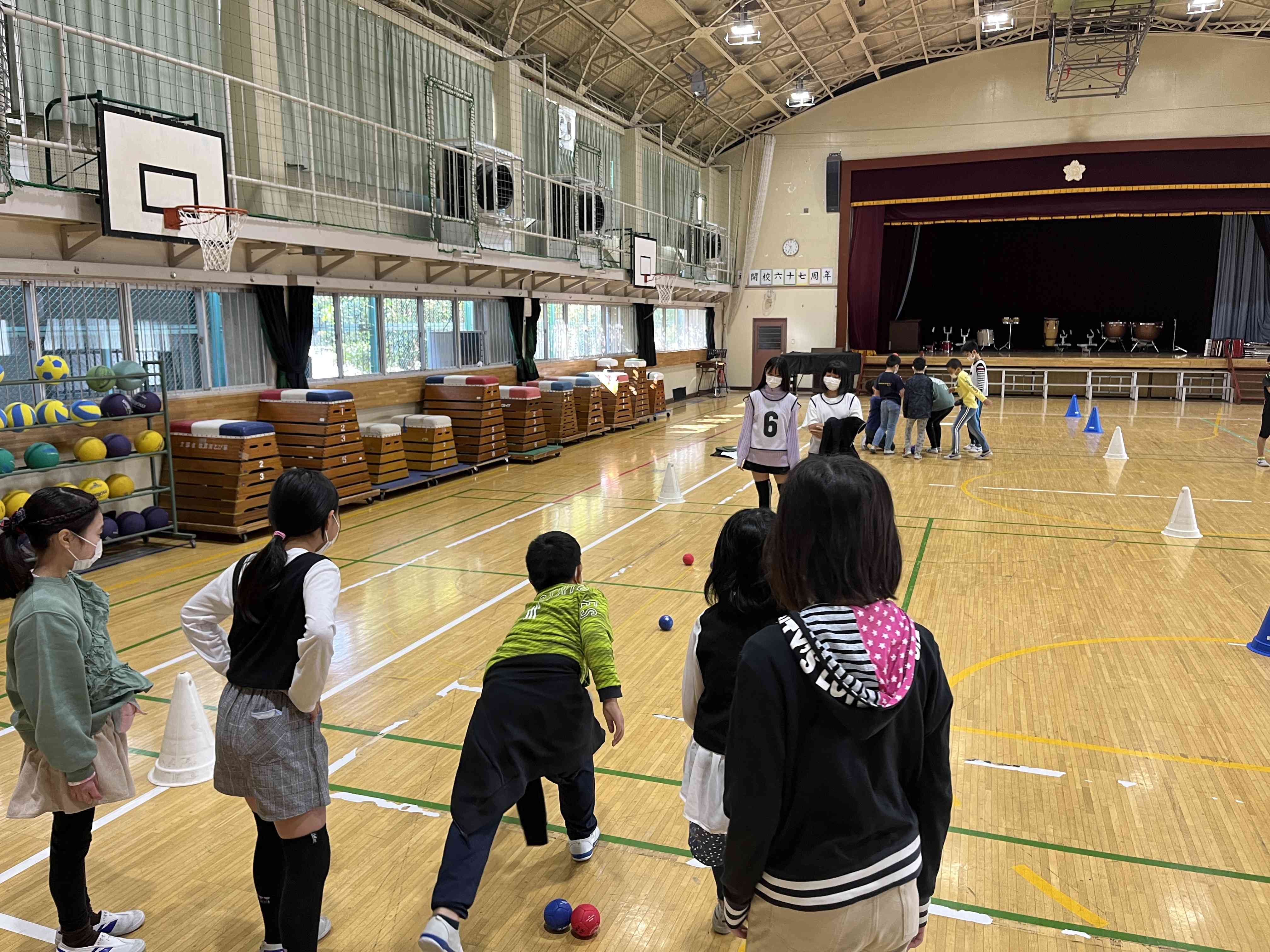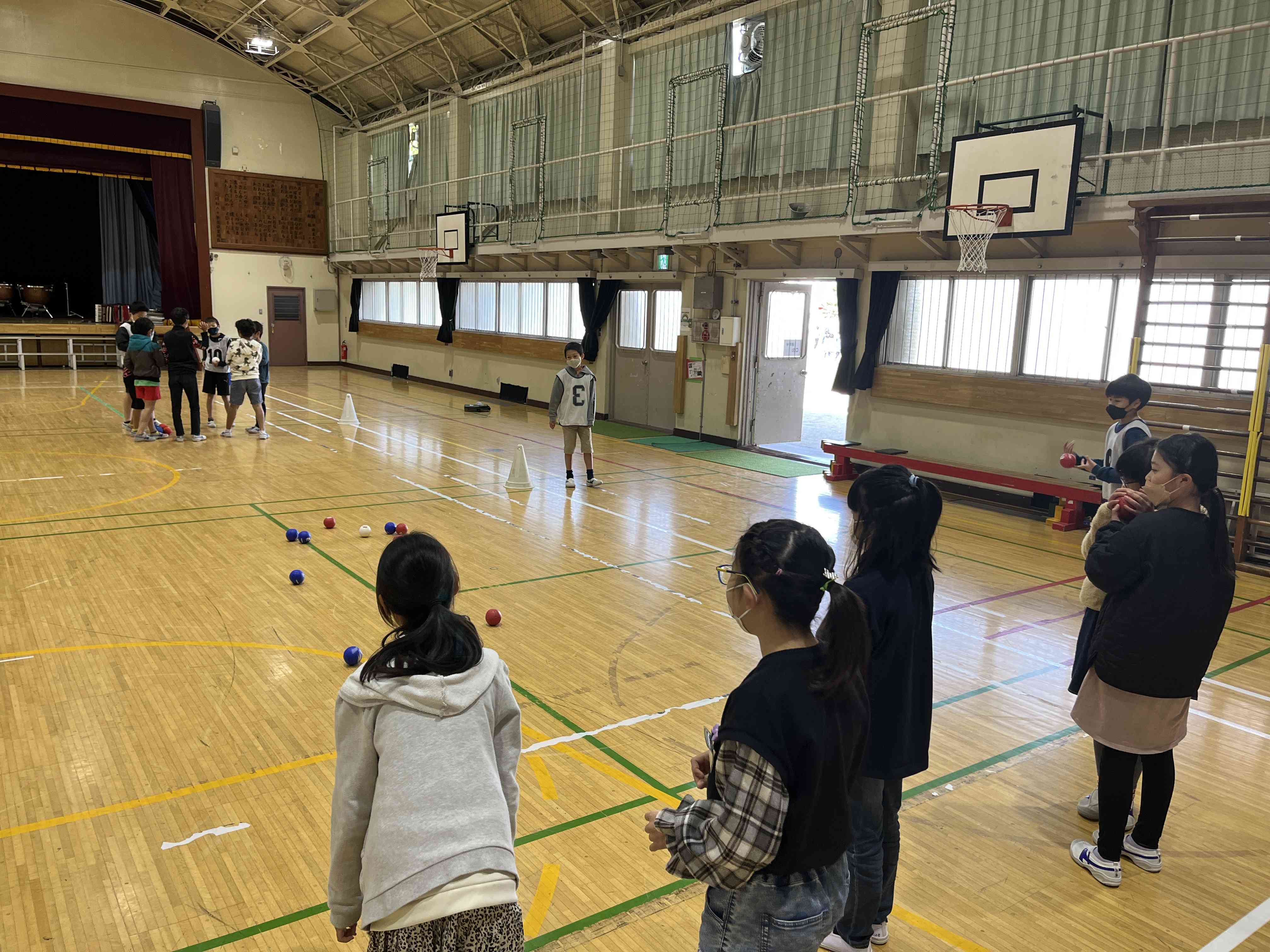 先週から、中休みにボッチャ体験会が行われています。 運動委員会が、全校に運動の楽しさを味わってもらおうと企画した体験会です。 1日ずつ各クラスや学年が体育館に訪れ、運動委員と一緒にボッチャを楽しんでいます。 東京パラリンピックでも日本人選手が活躍して、誰でも楽しめるスポーツとして注目を集めているボッチャ。 みんなが楽しんで、夢中になって取り組んでいます!