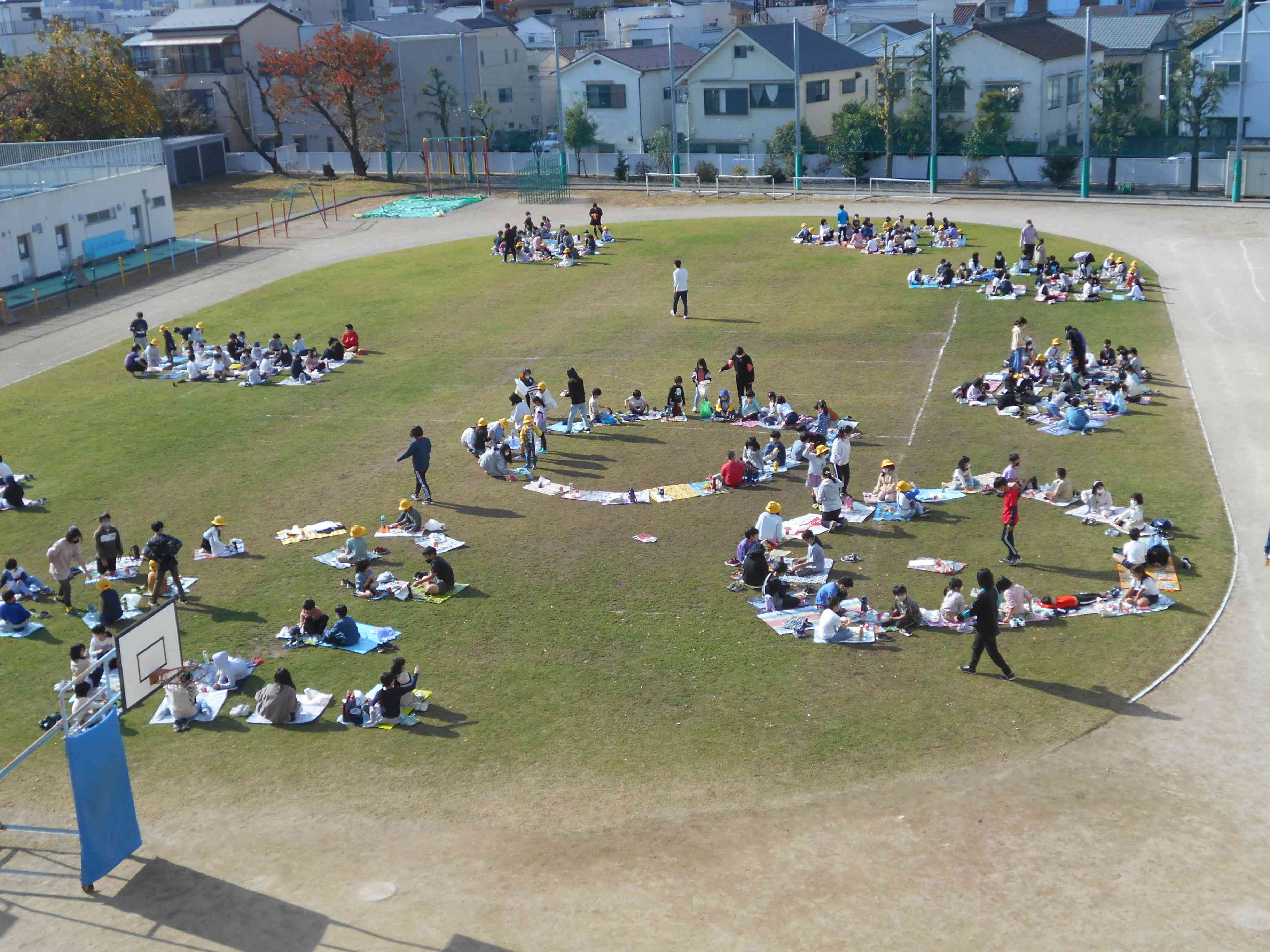 なかよし班ごとに、芝生の上でお弁当を食べました。 お弁当を食べた後は、班ごとに遊びました。