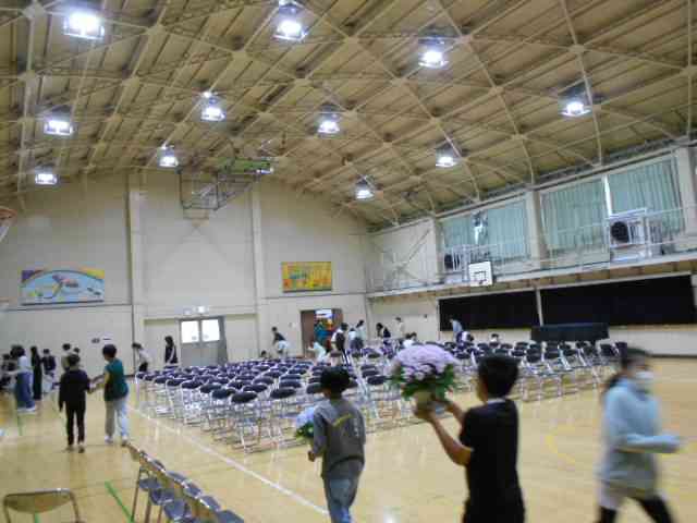今日は1年生が朝から登校してきました。 教室での学習が始まります。 6年生は入学式の会場を通常の体育館に復旧してくれました。 六砂の靴箱です。「くつならべ」がしっかりできる六砂です。