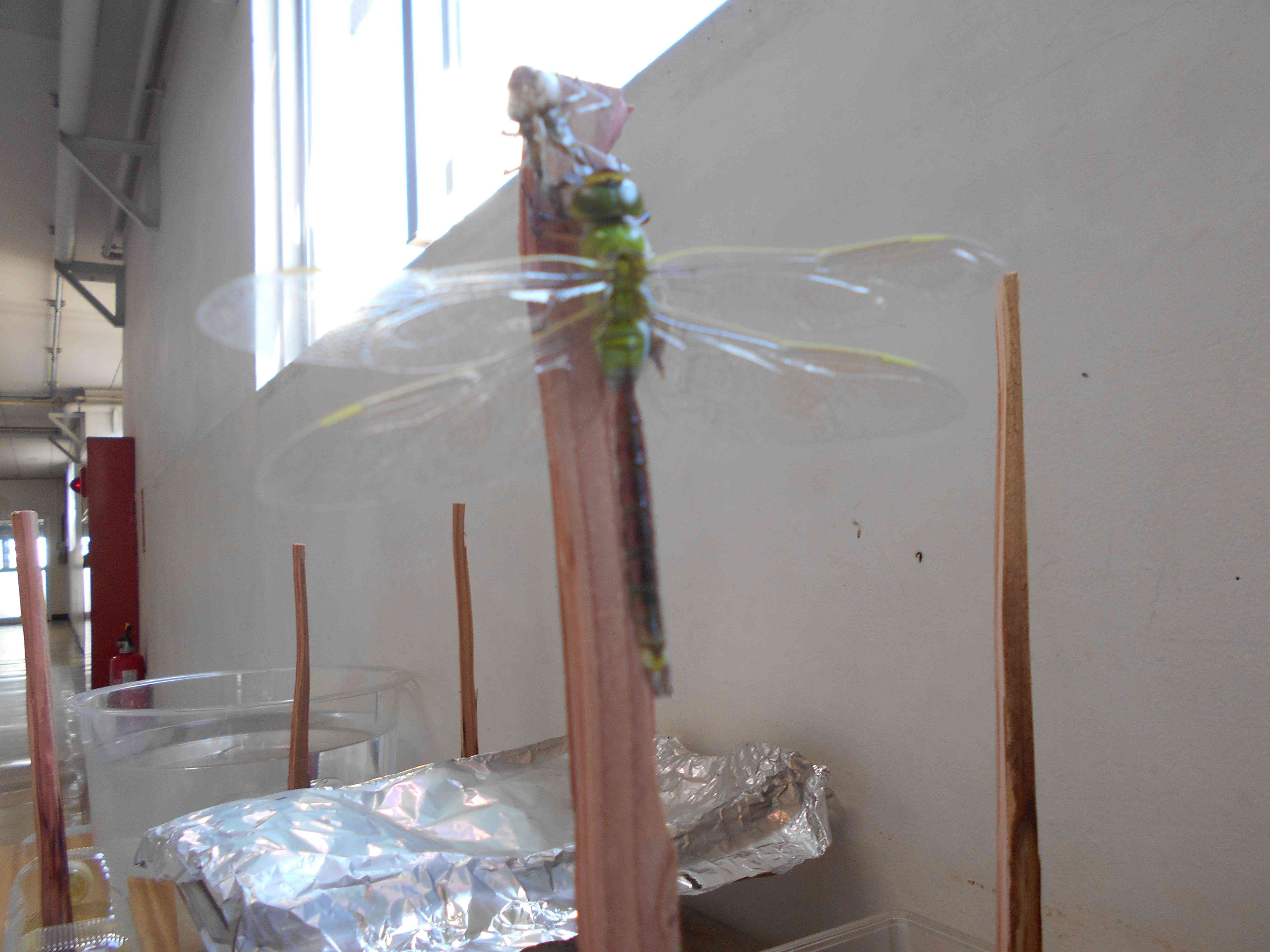 職員室前のヤゴが羽化しました。 昨日の夕方から登木に登り始め、朝方に羽化したようです。 大きなギンヤンマです。