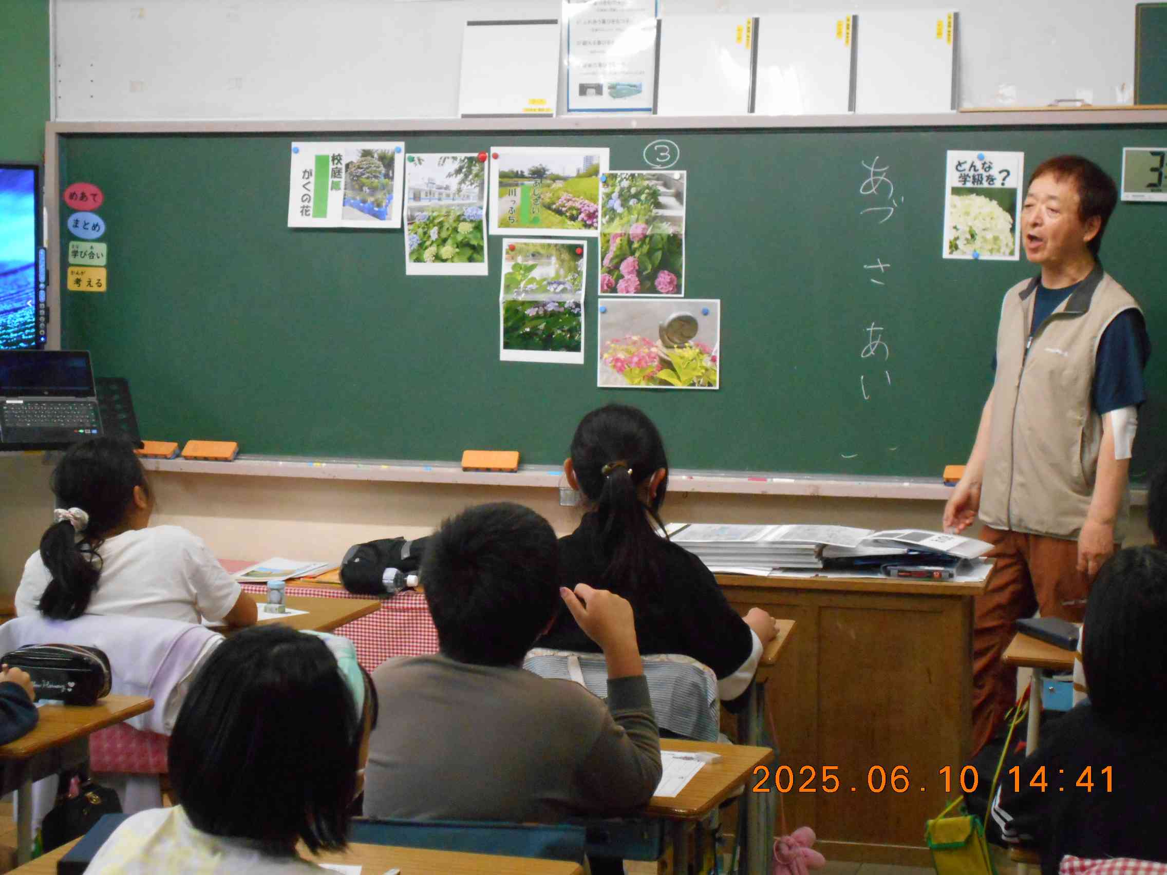 今日は1時間目から6時間目まで、6つのクラスの授業を45分ずつ見ました。梅雨入りで、外遊びはできませんが、学習に集中している6砂のみんなです。 (by k)