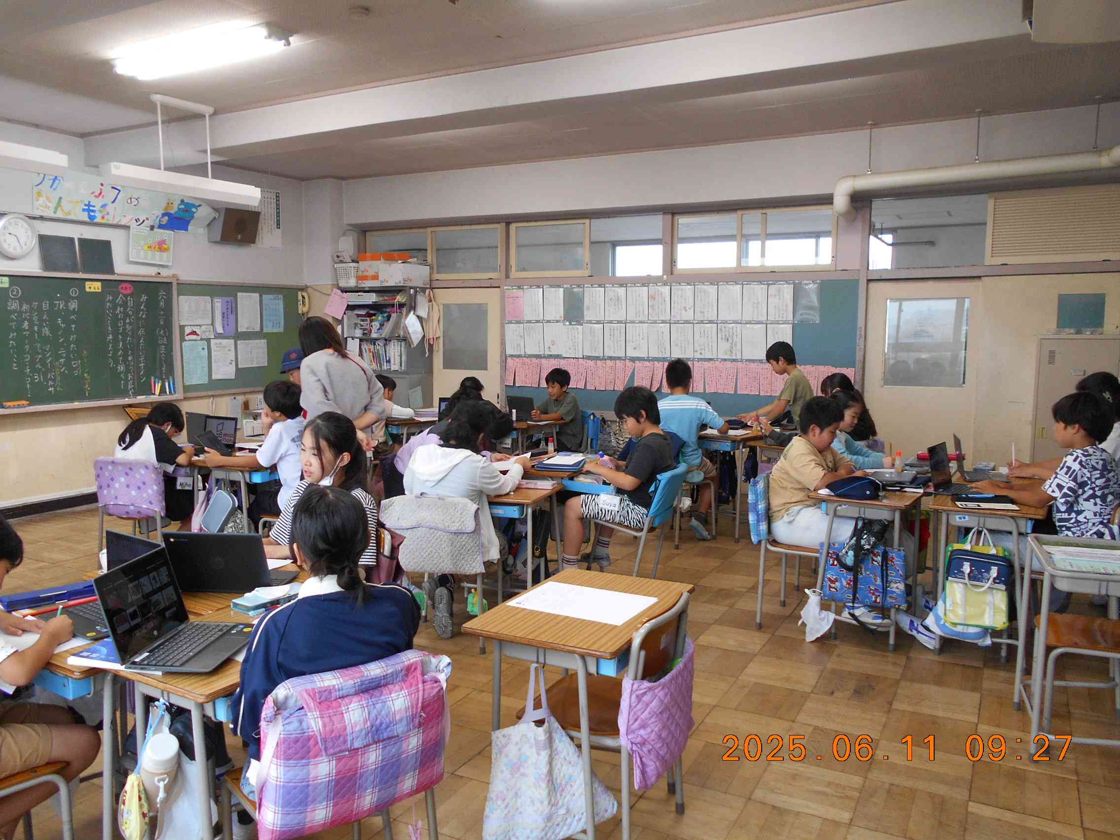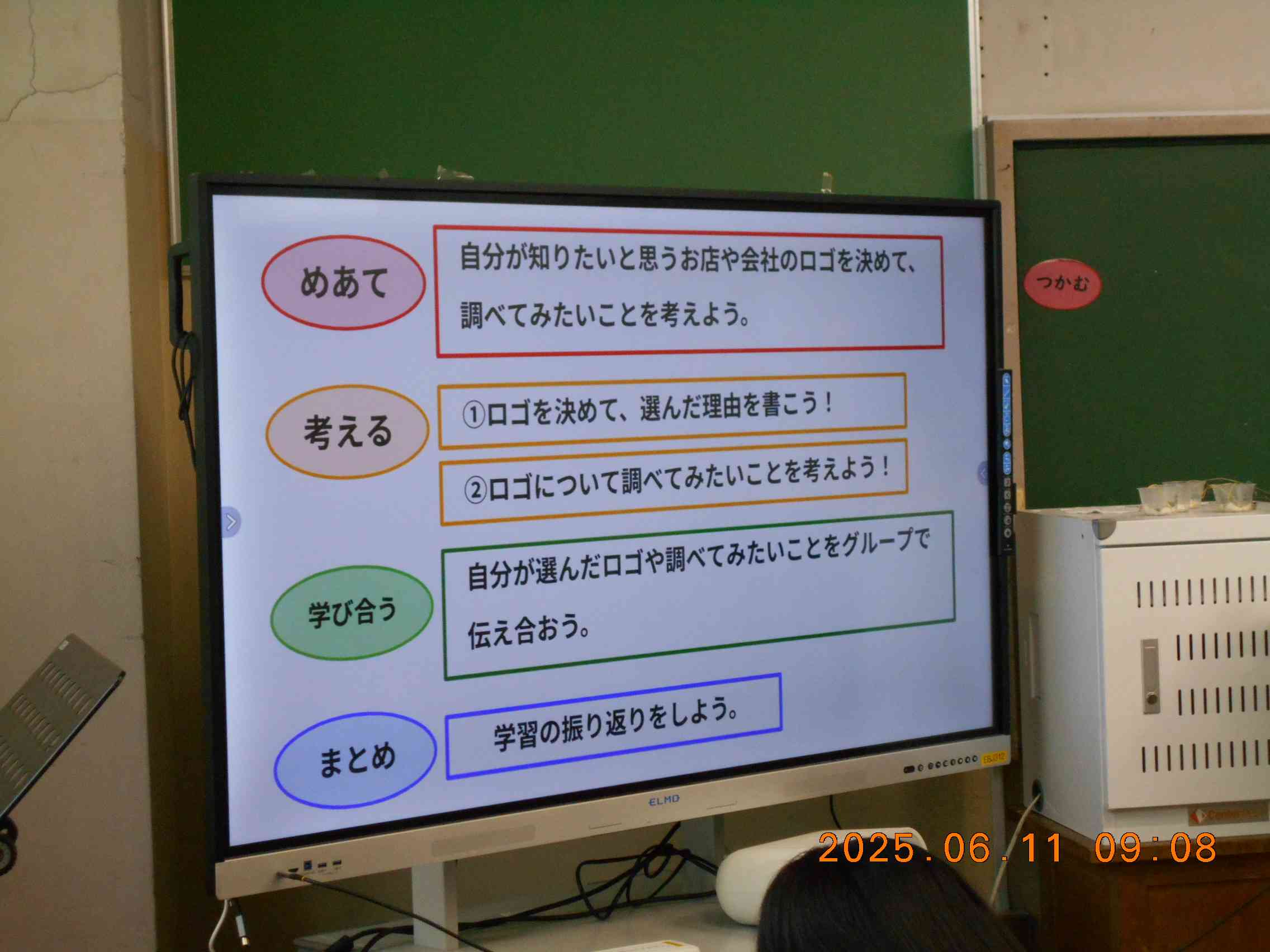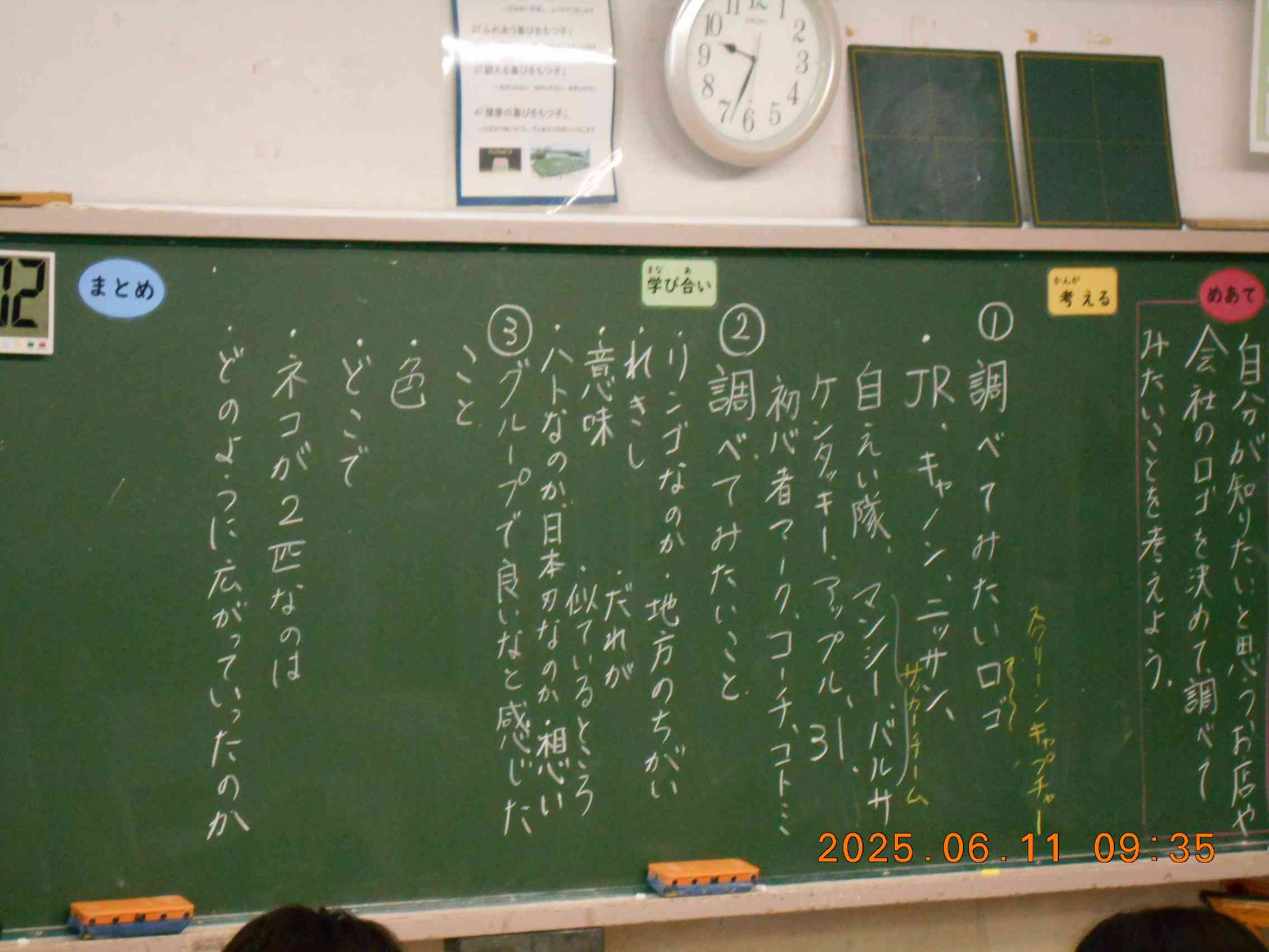 読み聞かせのつづきです。 それから・・・ 5年生の授業に45分間参加しました。 いろいろなロゴマークには、それぞれいろいろな意味が込められているようです。謎がありそうです。 (by k)