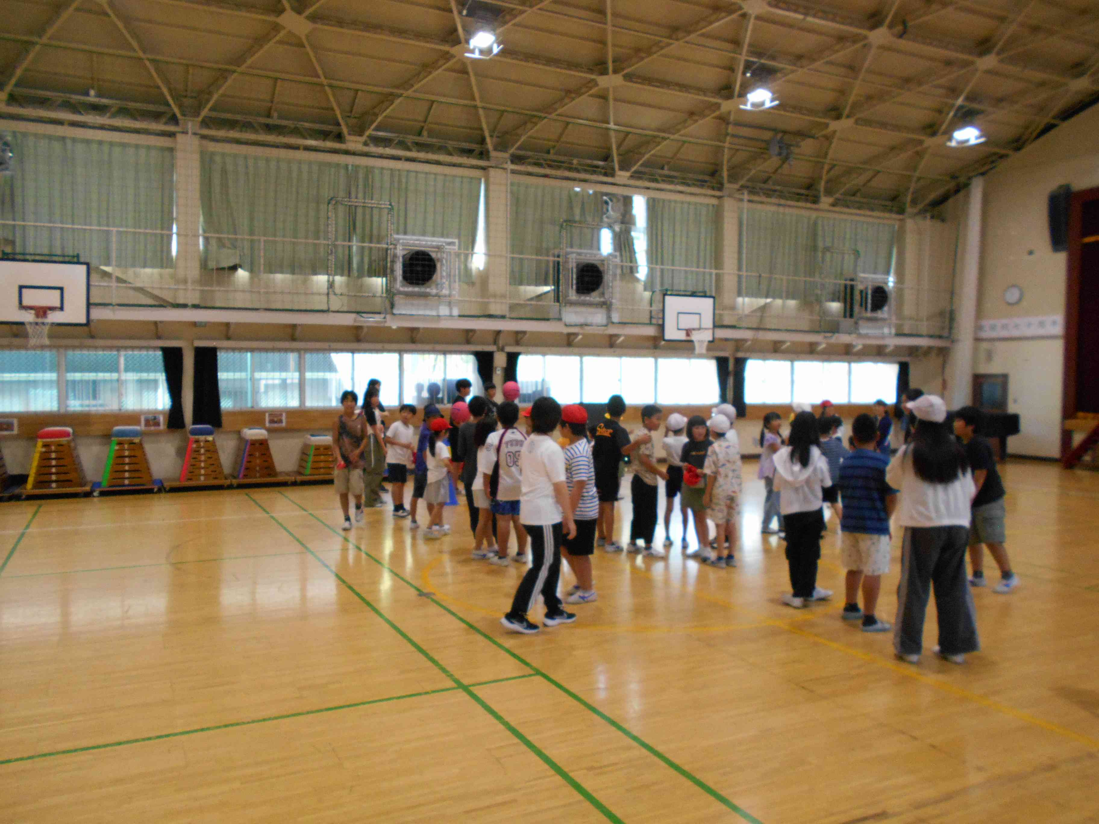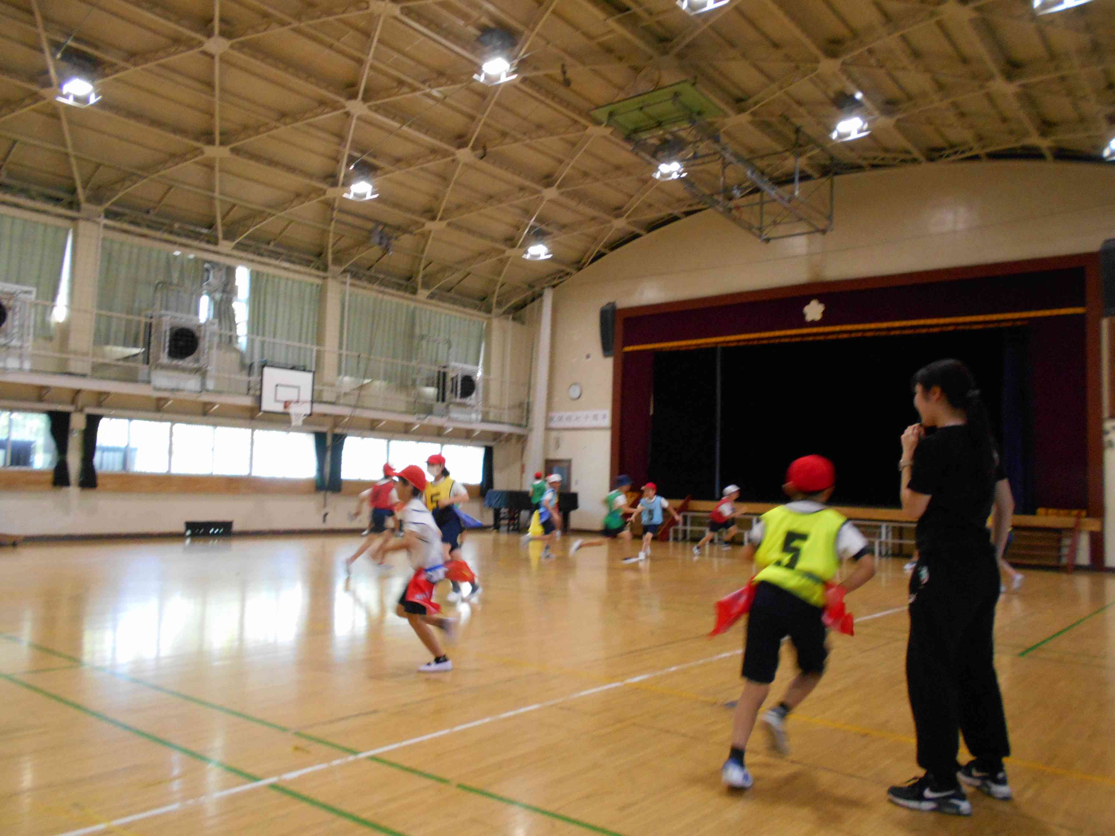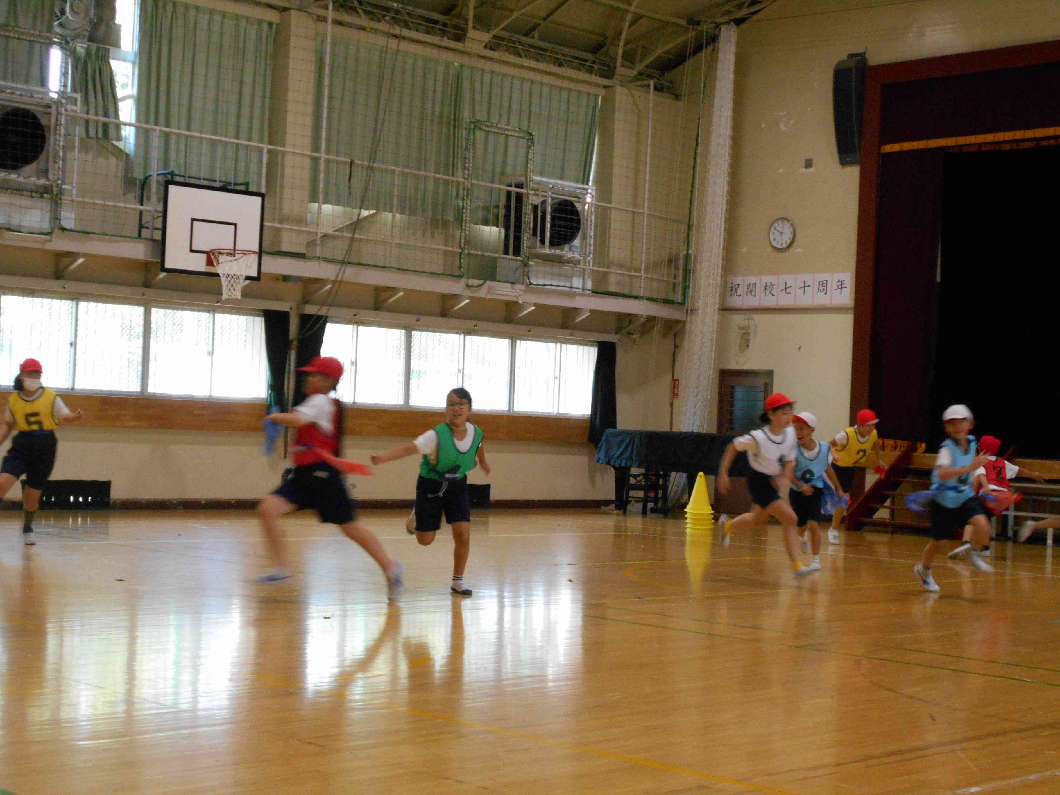 今日の体育館体育は 4年生がフラッグフットボールに向けた、タグとりゲームをしていました。 そして、中休みは「なかよし班ドッジボール大会」一回戦第二試合 12班VS3班で12班が一回戦突破です。