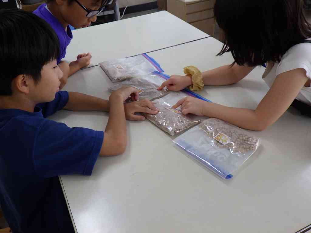 3年生がしょう油博士の出前授業を受けました。 しょう油の原料を実際に身で見たり、さわってみたりしてしょう油がどのように出来るのか、勉強しました。