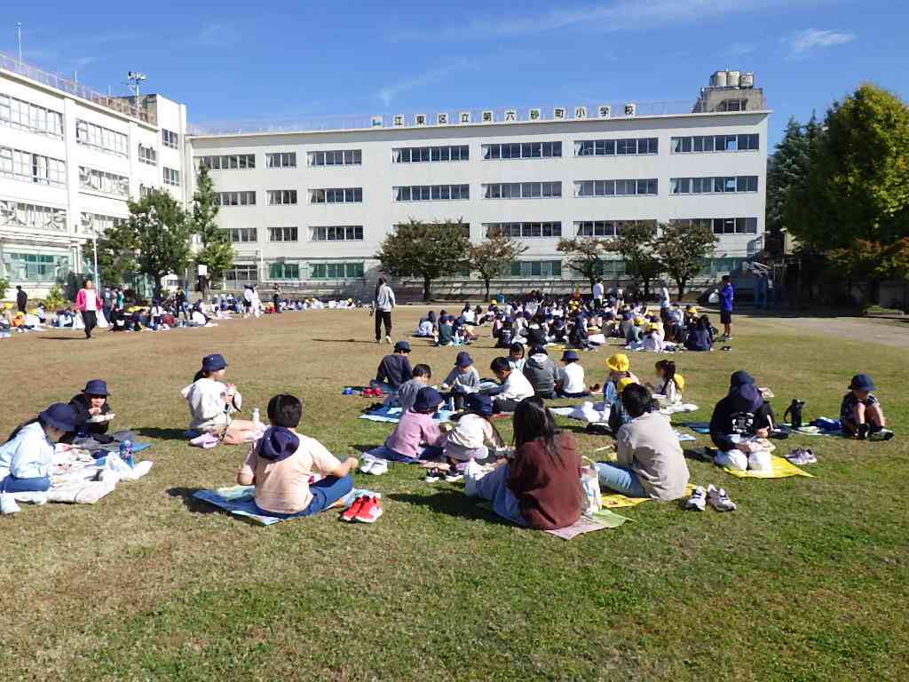 昨日の木枯らし一号が嘘のような、まさに「小春日和」 なかよし班で集合して、「芝生deランチ」でした。 和やかな一時を過ごしました。(by k)