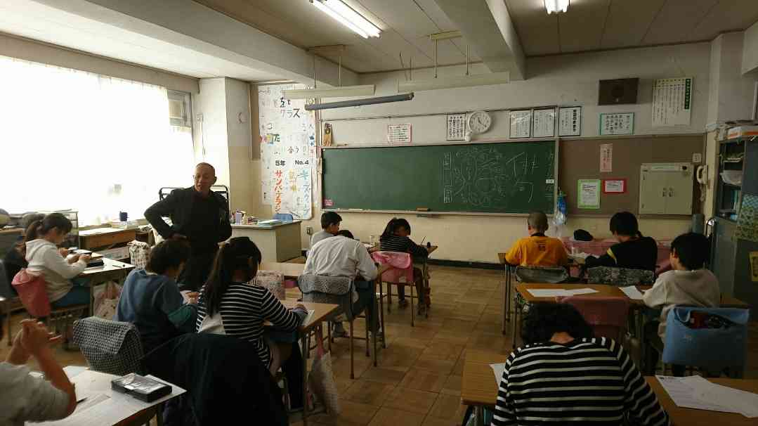 区から講師の先生がきてくださいました 題材をさがしに校庭にもでかけました